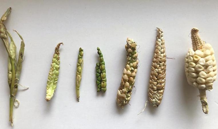 มีจุดเริ่มต้นมาจากหญ้า Teosinte ในประเทศแม็กซิโก ที่มีลักษณะคล้ายฝักถั่วและรสชาติคล้ายมันฝรั่งดิบ แต่หลังจากผ่านระยะเวลามากว่าเกือบหมื่นปีก็กลายร่างมาเป็นข้าวโพดฝักอ้วนอย่างที่เราเห็นกันในปัจจุบัน