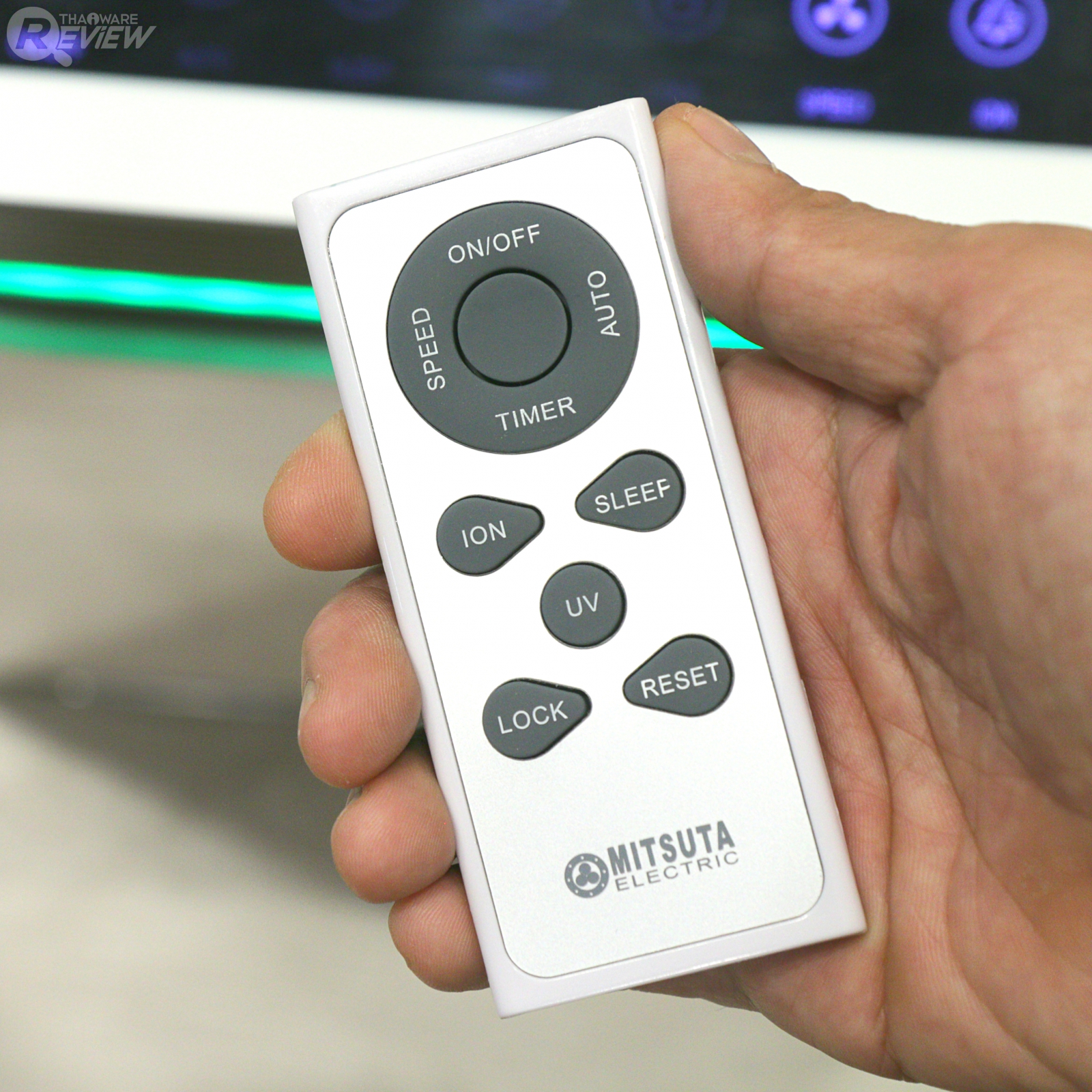 ถ้าไม่อยากเดินไปกดสั่งงานผ่านปุ่มกดบนตัวเครื่อง เครื่องฟอกอากาศตัวนี้ก็อำนวยความสะดวกให้เราด้วยรีโมทคอนโทรลขนาดกะทัดรัด (รีโมทใช้พลังงานจากแบตฯ ก้อนกระดุมไซส์ CR2025) โดยที่บนตัวรีโมทก็มีปุ่มกด 9 ปุ่มเท่ากับจำนวนปุ่มที่มีอยู่บนตัวเครื่องเลย ฟังก์ชั่นการทำงานของแต่ละปุ่มก็เป็นแบบเดียวกันครับ