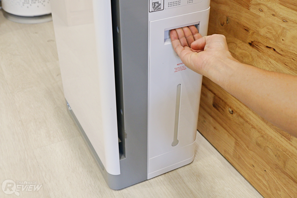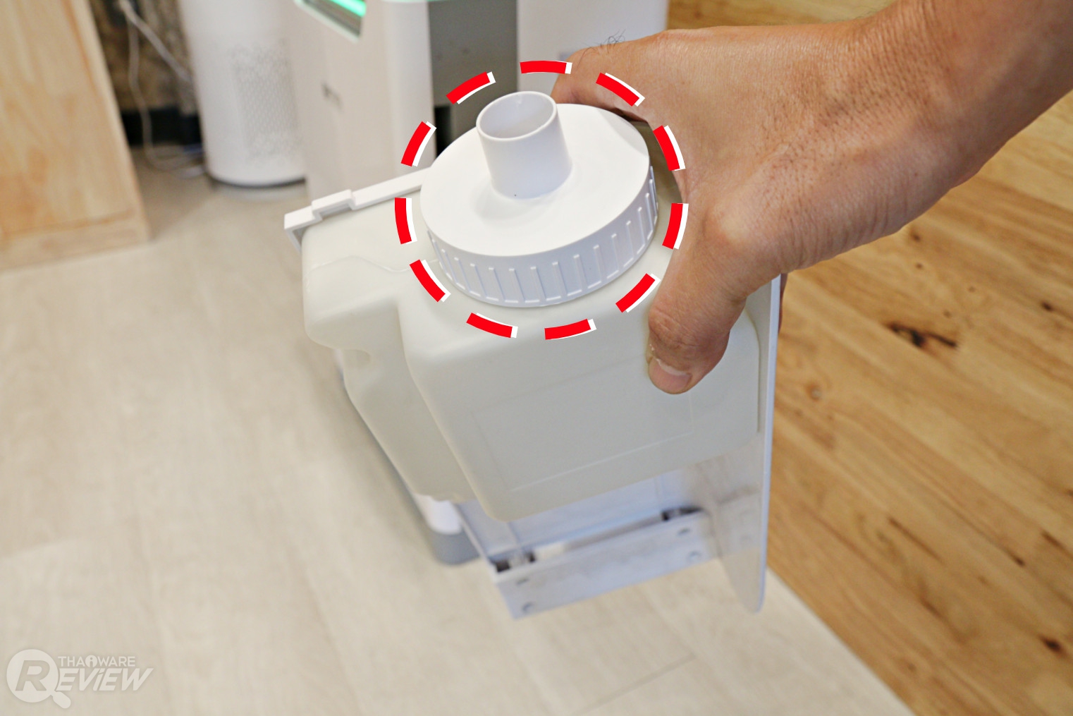 ด้วยความที่เจ้าเครื่องฟอกอากาศตัวนี้มีฟีเจอร์เพิ่มความชื้นในอากาศให้อยู่ในระดับที่พอเหมาะ และเพื่อที่จะให้ระบบเพิ่มความชื้นในอากาศทำงานได้ เราต้องเติมน้ำลงในถังน้ำของตัวเครื่อง
