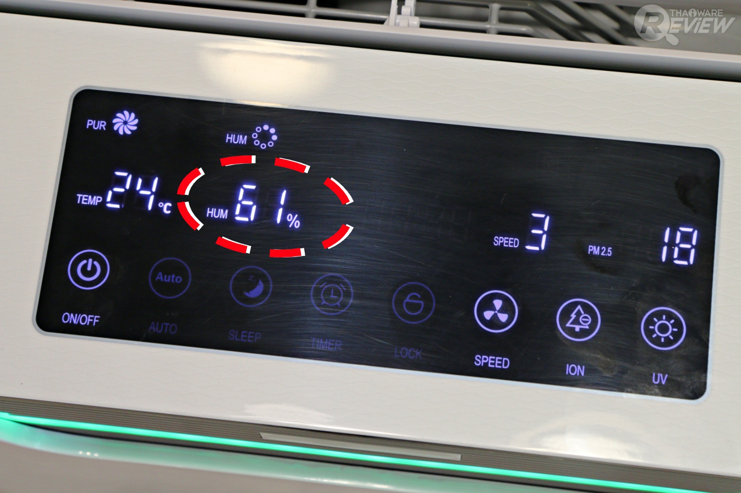 เรามาดูประสิทธิภาพการจัดการความชื้นในอากาศของ MITSUTA MAP650 เครื่องนี้กัน โดยที่ตัวเครื่องมีเซ็นเซอร์และมีการแสดงตัวเลข % ค่าระดับความชื้นในอากาศบนแผงควบคุมของตัวเครื่องด้วย และเราจะใช้ตัวเลขนี้เพื่อชี้วัดประสิทธิภาพการจัดการความชื้นในอากาศของเครื่องฟอกอากาศนี้