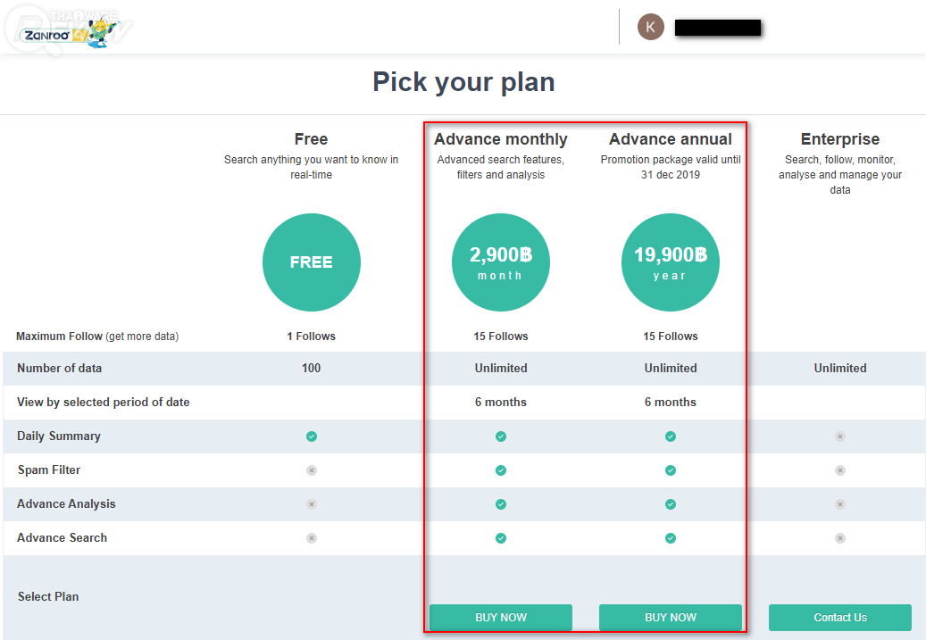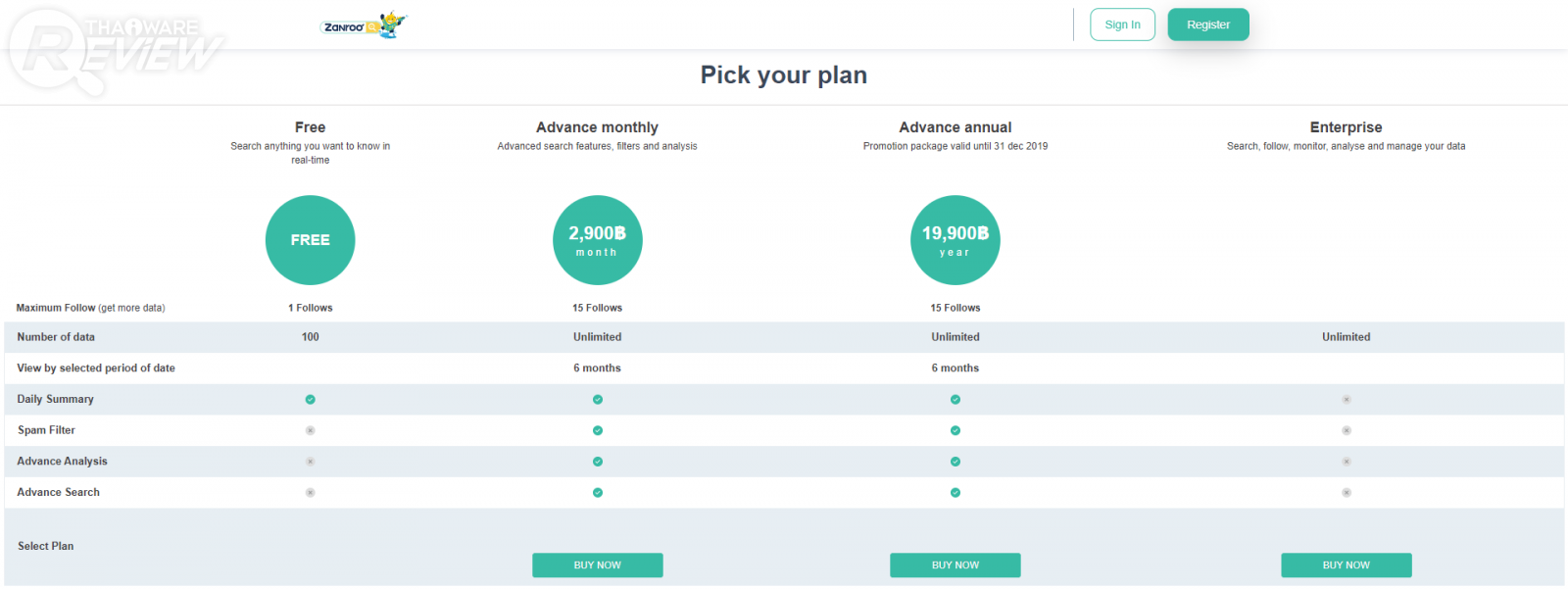 นอกจากแพ็คเกจฟรีที่มีฟีเจอร์ตามที่กล่าวมาด้านบนแล้ว หากต้องการฟีเจอร์ใช้งานระดับสูง หรือที่มากกว่าเวอร์ชันฟรี ก็จะมีแพ็คเกจสมาชิกให้เลือกใช้งาน ซึ่งแบ่งออกเป็น แพ็คเกจ Advance รายเดือนและรายปี ซึ่งจะทำให้ฟีเจอร์อย่างการ Follow หรือ Analyze สามารถทำงานได้มากขึ้นและละเอียดขึ้น