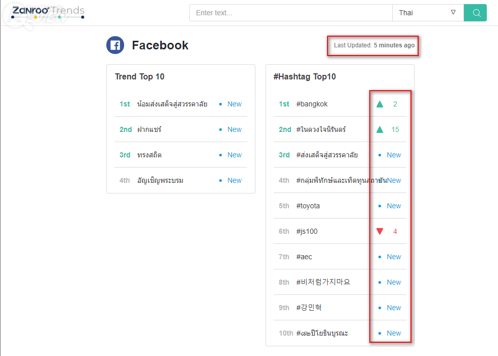 แต่ละเทรนด์จะมีการอัปเดตอันดับขึ้น-ลง หรือเทรนด์ใหม่ให้ด้วย ซึ่งไม่ได้อัปเดตแบบเรียลไทม์ตลอดเวลา แต่ก็มีการอัปเดตสม่ำเสมอ (เห็นตั้งแต่ไม่กี่นาทีไปถึง 1-2 ชั่วโมง)