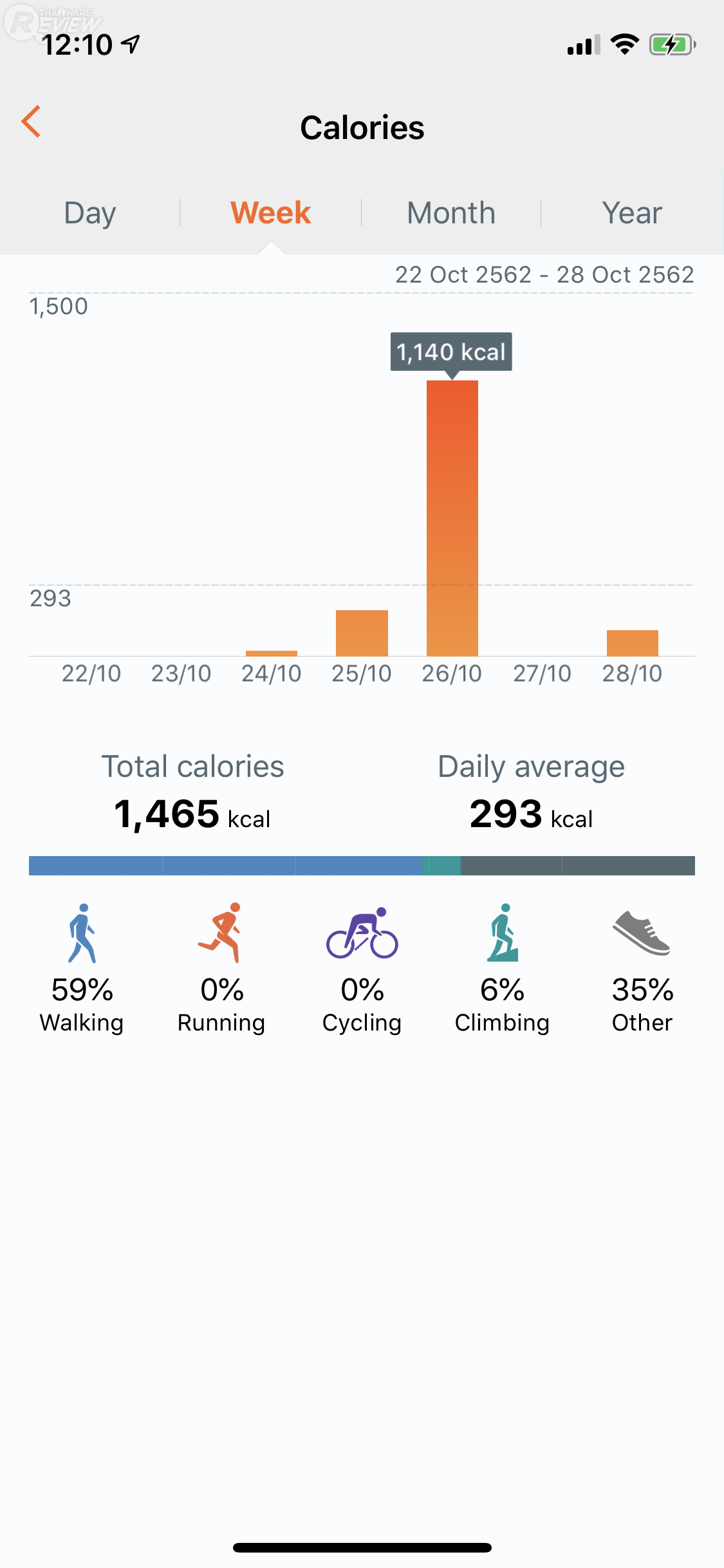 เราสามารถแตะดูพลังงานที่เราเผาผลาญ, ระยะทาง, การนับก้าว, การเดินขึ้นบันได ได้อย่างละเอียด โดยมันสรุปข้อมูลให้เราดูเป็นรายชั่วโมง, รายวัน และรายสัปดาห์ ซึ่งสามารถดูข้อมูลเหล่านี้ได้จากตัวนาฬิกาโดยเลย