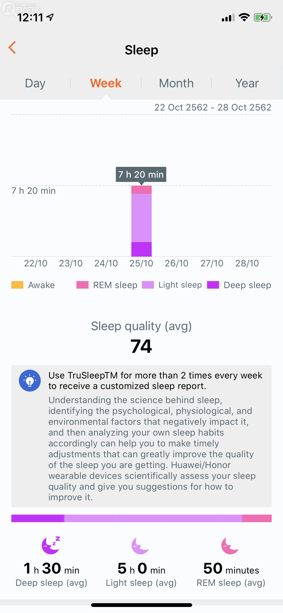 อีกหนึ่งคุณสมบัติเด่นของ HUAWEI WATCH GT 2 คือ การตรวจจับการนอนหลับ TruSleep 2.0 ที่ HUAWEI ระบุว่านาฬิกาจะวัดอัตราการเต้นของหัวใจ วิเคราะห์การหายใจ และให้คะแนนคุณภาพการนอนหลับโดยรวมได้ไปพร้อมกัน เท่าที่เราลองตรวจสอบเวลานอนดูก็ค่อนข้างตรงนะ