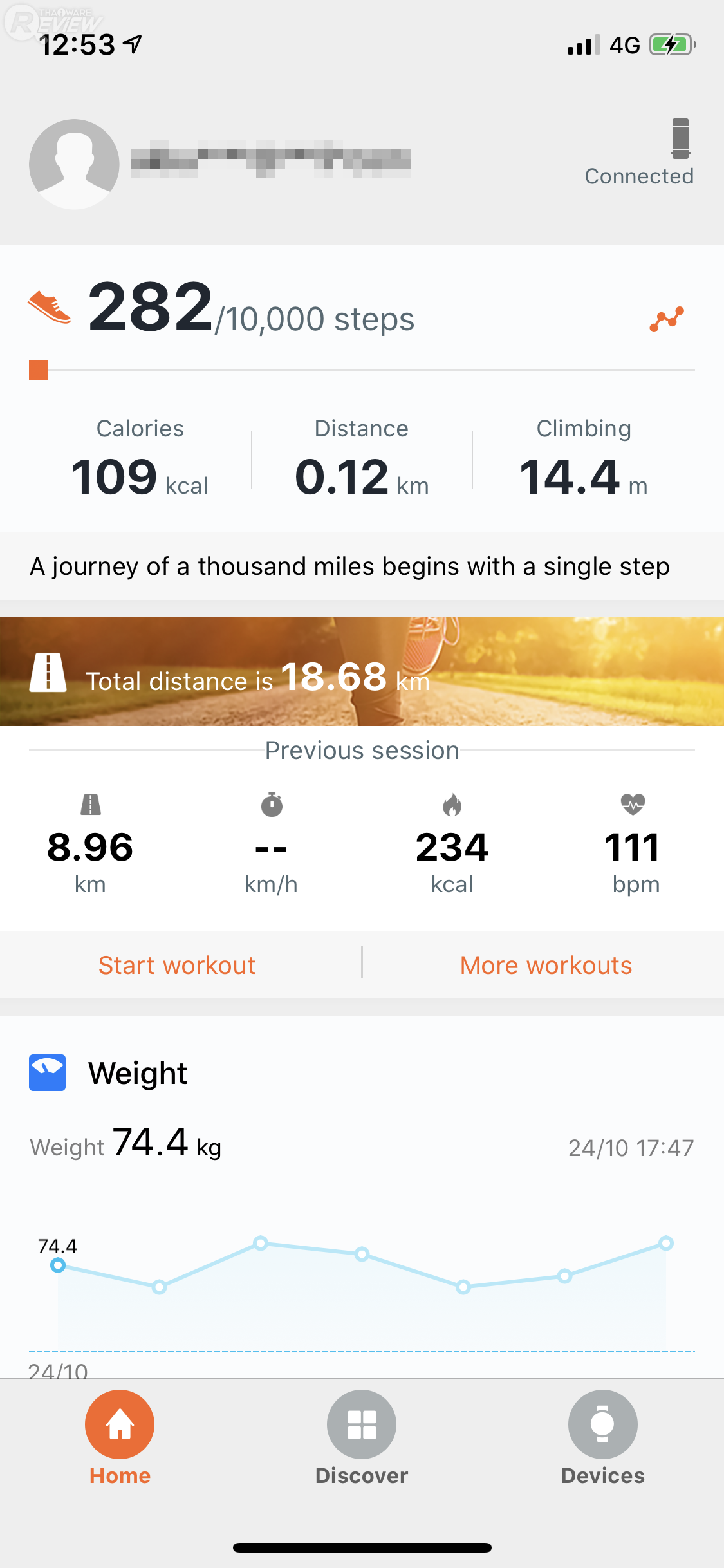 ตัวแอปฯ จะแบ่งหน้าแรก ออกเป็นส่วนๆ ด้วยสิ่งที่เรียกว่า Cards โดยจะมีให้เลือกแสดงผลอยู่ 5 ค่า คือ Fitness, Weight, Traing plan, Heart rate และ Sleep เราสามารถเลือกว่าจะให้มี Cards ไหนแสดงผลบ้างได้ด้วย ตามความต้องการของผู้ใช้