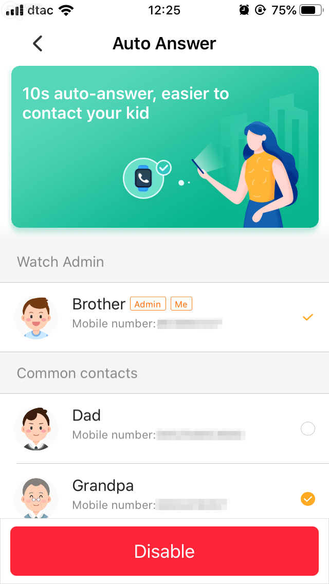 ปัญหาบ่อยครั้งของการโทรหากัน ก็คือการไม่รับสาย ไม่ว่าจะด้วยความตั้งใจหรือไม่สังเกตเห็นว่าใครโทรมา ซึ่งโหมดรับสายอัตโนมัติจะทำให้เราสบายใจไปอีกขั้น โดยเมื่อผู้ปกครองโทรหาน้อง แล้วไม่ได้รับสายเกิน 10 วินาที ตัวนาฬิกาก็จะรับสายให้อัตโนมัตินั่นเอง