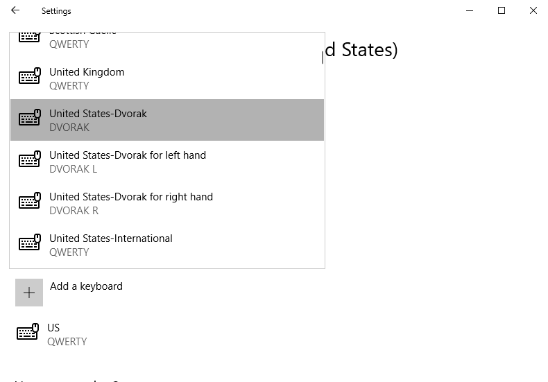 ใครที่อยากลองใช้งาน ใน Windows มีให้ปรับรูปแบบแป้นพิมพ์เป็น Dvorak ได้อยู่แล้ว สามารถเข้าไปในการตั้งค่าเพื่อเพิ่มคีย์บอร์ดได้เลย ด้วยการไปที่ Settings >> Time & language >> Language >> English >> Options >> Add a keyboard