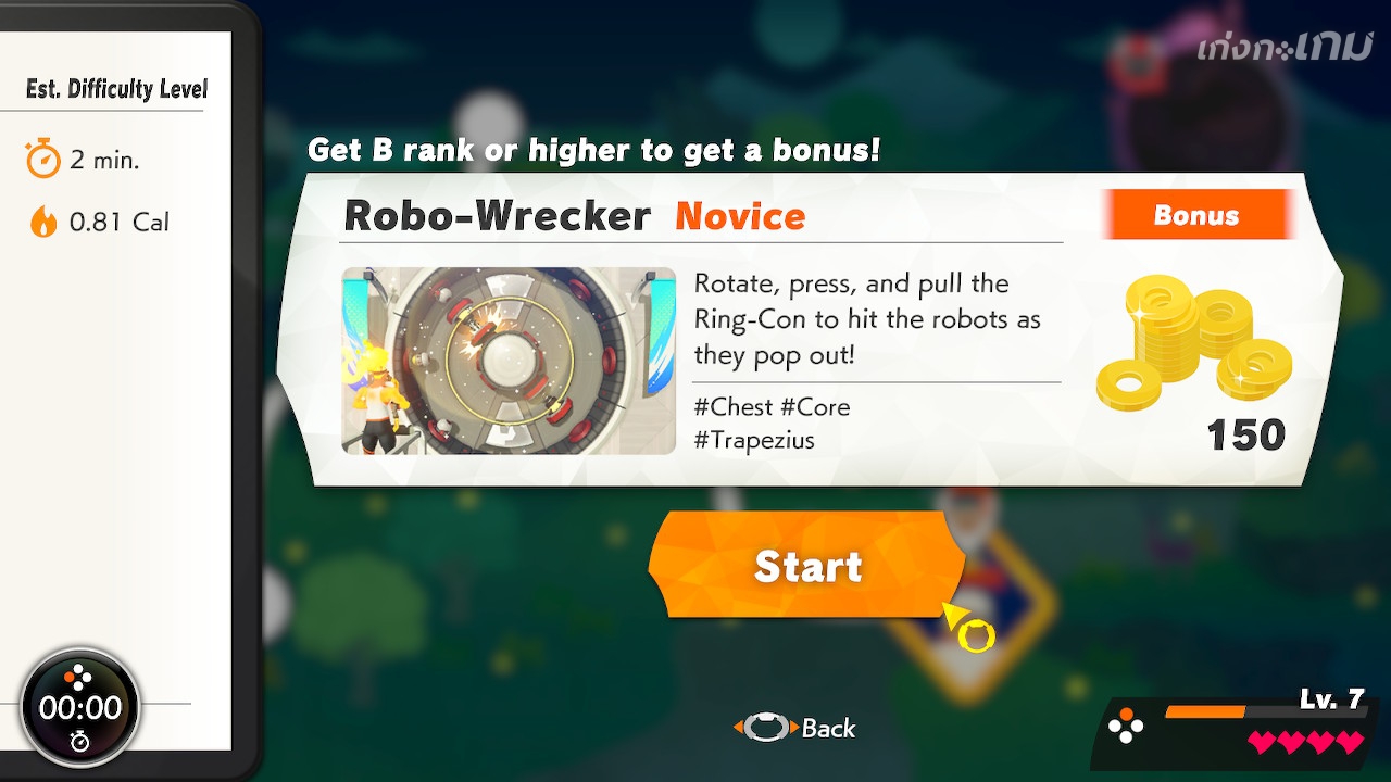 ไม่ต้องไปหาสมาร์ทวอชหรืออุปกรณ์เสริมใดๆ มาวัดประเมินผลหลังเล่นให้ยุ่งยาก เพราะเกมนี้มีระบบตรวจจับชีพจรให้ในตัวโดยอาศัยฟีเจอร์ของเครื่อง Switch ที่ไม่เคยถูกใช้ในเกมใดมาก่อนที่แถบสีดำด้านใต้ของ Joy-Con (ตอนที่ได้เครื่องมาใหม่ๆ ผู้เขียนยังไม่รู้เลยว่ามันทำอะไรได้จนกระทั่งมีเกมนี้ออกมา...)