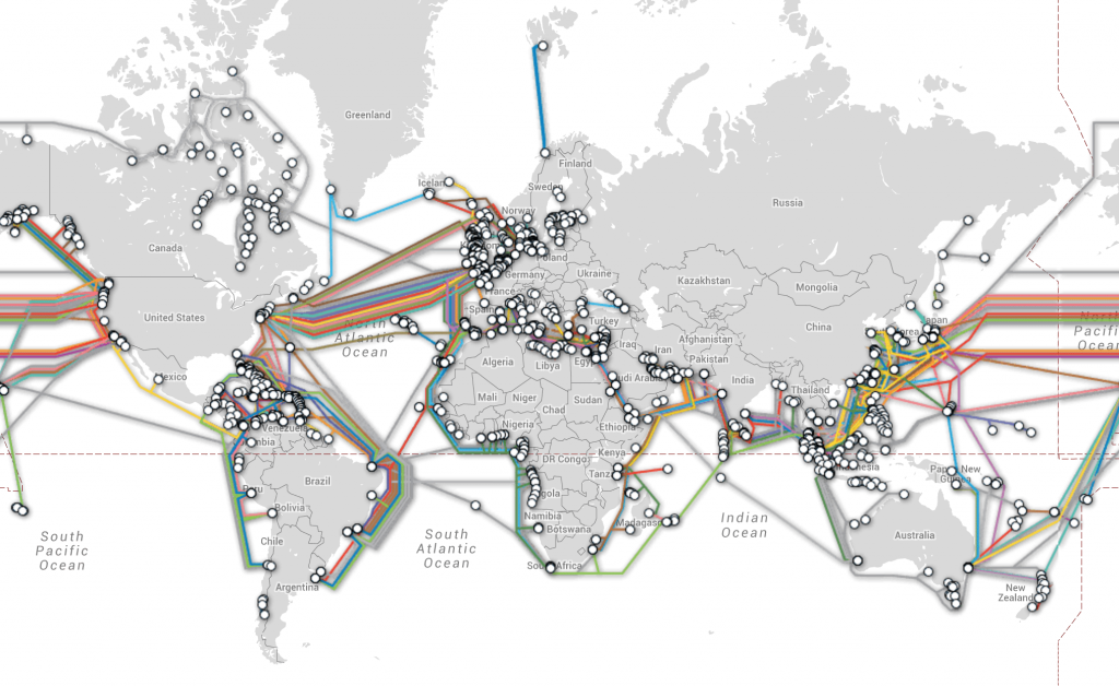 แผนที่ของเส้นใยแก้วนำแสงใต้สมุทร