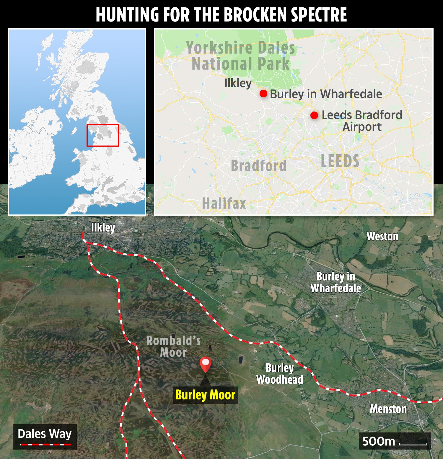จุด Berley Moor ในอุทยานแห่งชาติ Yorkshire Dales ประเทศอังกฤษ เป็นจุดที่คาดว่าจะสามารถพบเห็น Brocken Spectre ได้