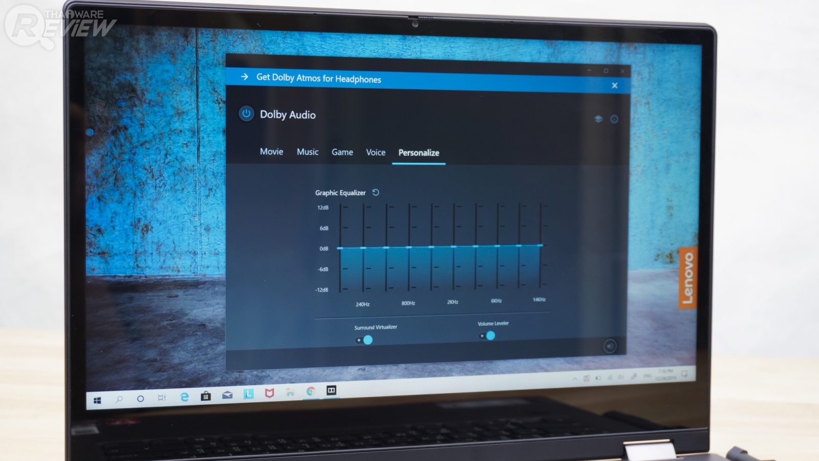 เรื่องระบบเสียงก็มี Dolby Audio ที่เป็นไดร์เวอร์ สำหรับให้ผู้ใช้งานได้ปรับแต่งโทนเสียงได้ตามต้องการ ส่วนตัวคิดว่ามันช่วยให้เสียงเหมาะกับรสนิยมของผู้ฟังมากขึ้น ถ้าชอบฟังเพลงเบสหนักๆ ก็ปรับย่านเสียงต่ำให้มากขึ้น หรือถ้าชอบเสียงสูงก็เร่งได้ นอกจากนี้แล้วยังตั้งพรีเซ็ตไว้สำหรับ การดูหนัง ฟังเพลง เล่นเกมส์ หรือการพูดคุยได้อีกด้วย แต่ถามว่ามันช่วยให้เสียงดีกว่ารุ่นอื่นไหมคงตอบไม่ได้เพราะเรื่องเสียงมันเป็นเรื่องของรสนิยมล้วนๆ บอกได้แค่ว่ามันไม่แย่เท่านั้นเอง