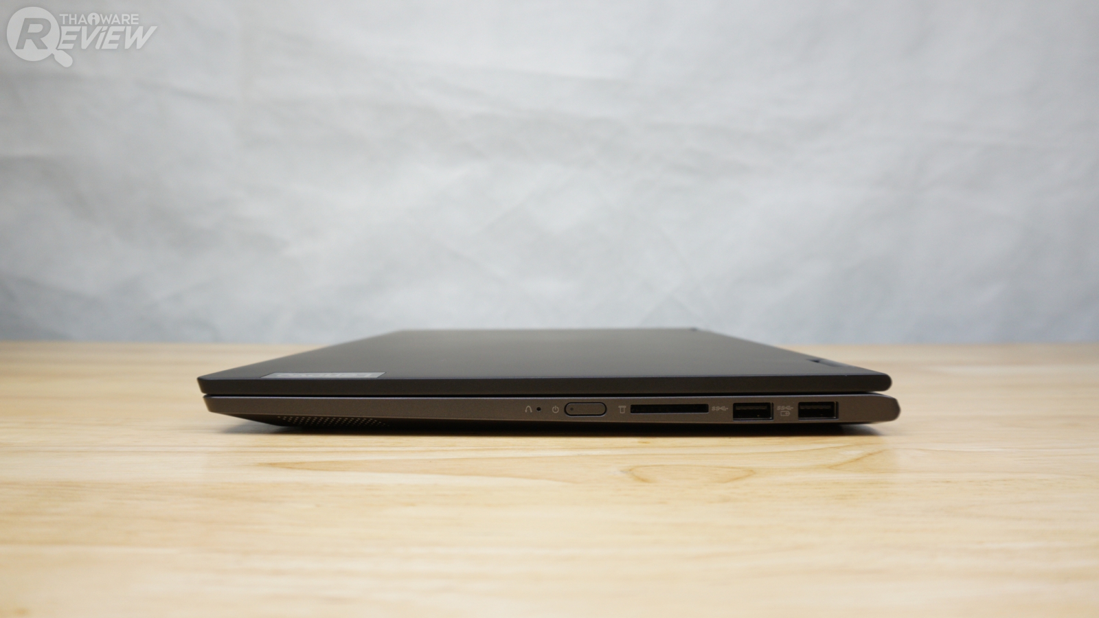 สำหรับเรื่องพอร์ตเจ้า Lenovo IdeaPad C340 ก็มีมาให้ครบครัน มีพอร์ต USB-A 3.1 (x2) | USB-C 3.1 (x1) | HDMI (x1) | Card Reader (x1) | Audio Jack 3.5 มม. ทำให้ไม่จำเป็นต้องหาพวกฮับ (HUB) มาต่อเสริม นอกจากนี้พอร์ต USB-A 3.1 จะมีหนึ่งช่อง (มีสัญลักษณ์แบตเตอรี่) ที่มีความสามารถในการจ่ายไฟขณะปิดเครื่อง จุดนี้ชอบมากเวลาฉุกเฉินมือถือแบตฯ ใกล้หมดก็เอามาเสียบชาร์จไว้ได้เลย (เหมือนเพาเวอร์แบงค์อย่างไรอย่างนั้น)