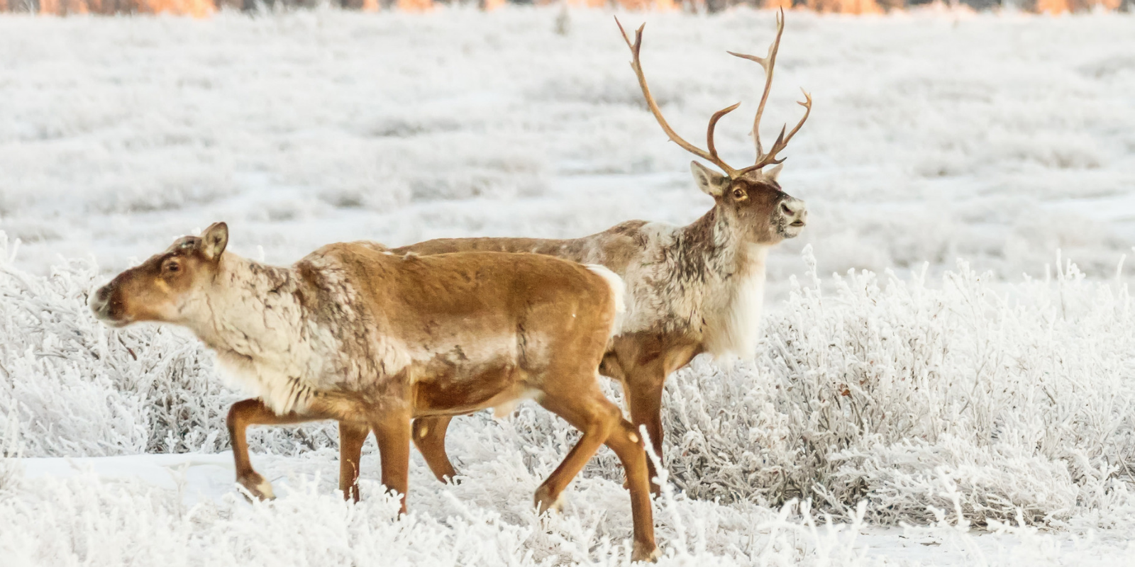 เรนเดียร์ตัวผู้ (ซ้าย) กับเรนเดียร์ตัวเมีย (ขวา) ในช่วงฤดูหนาว