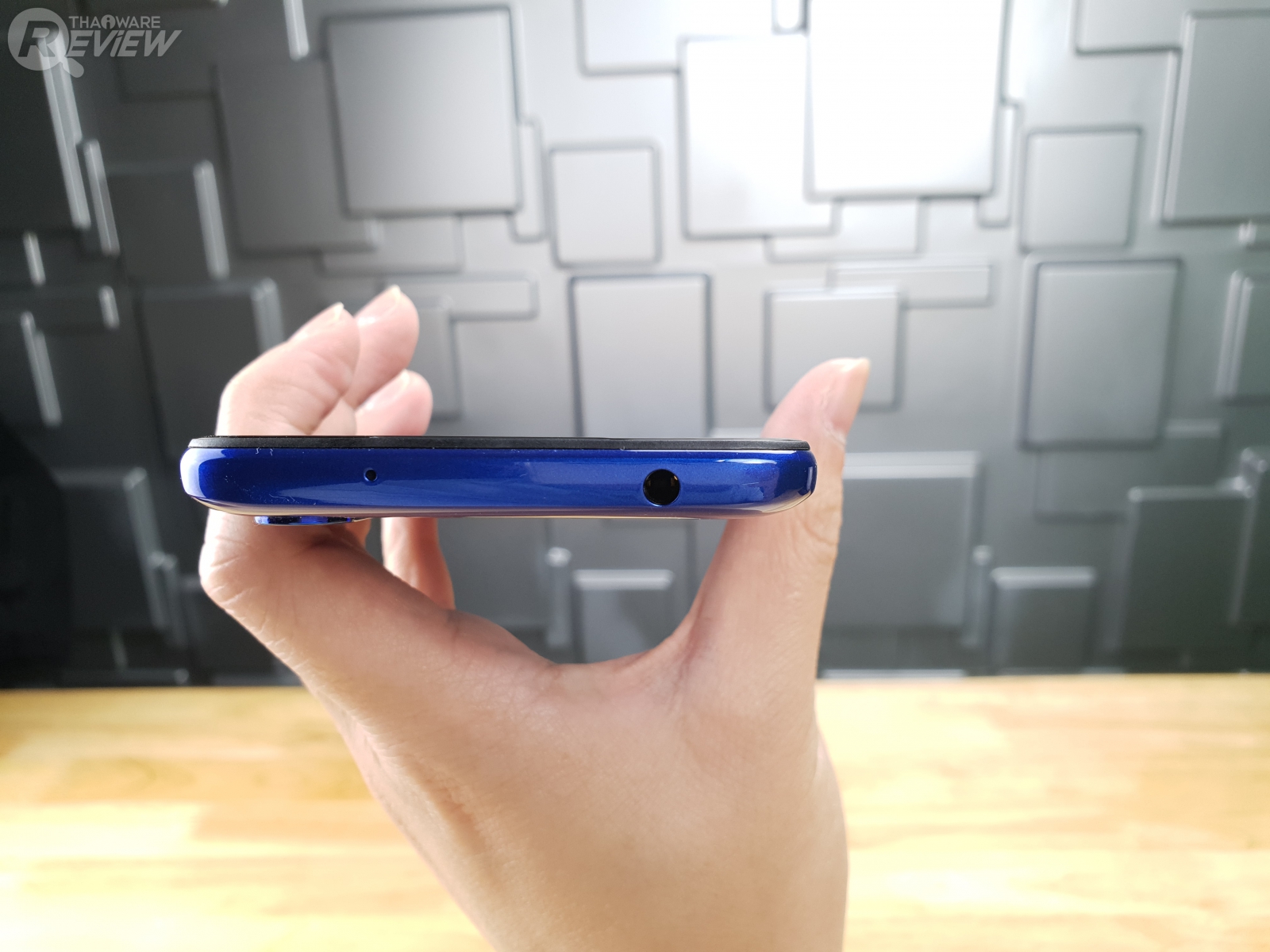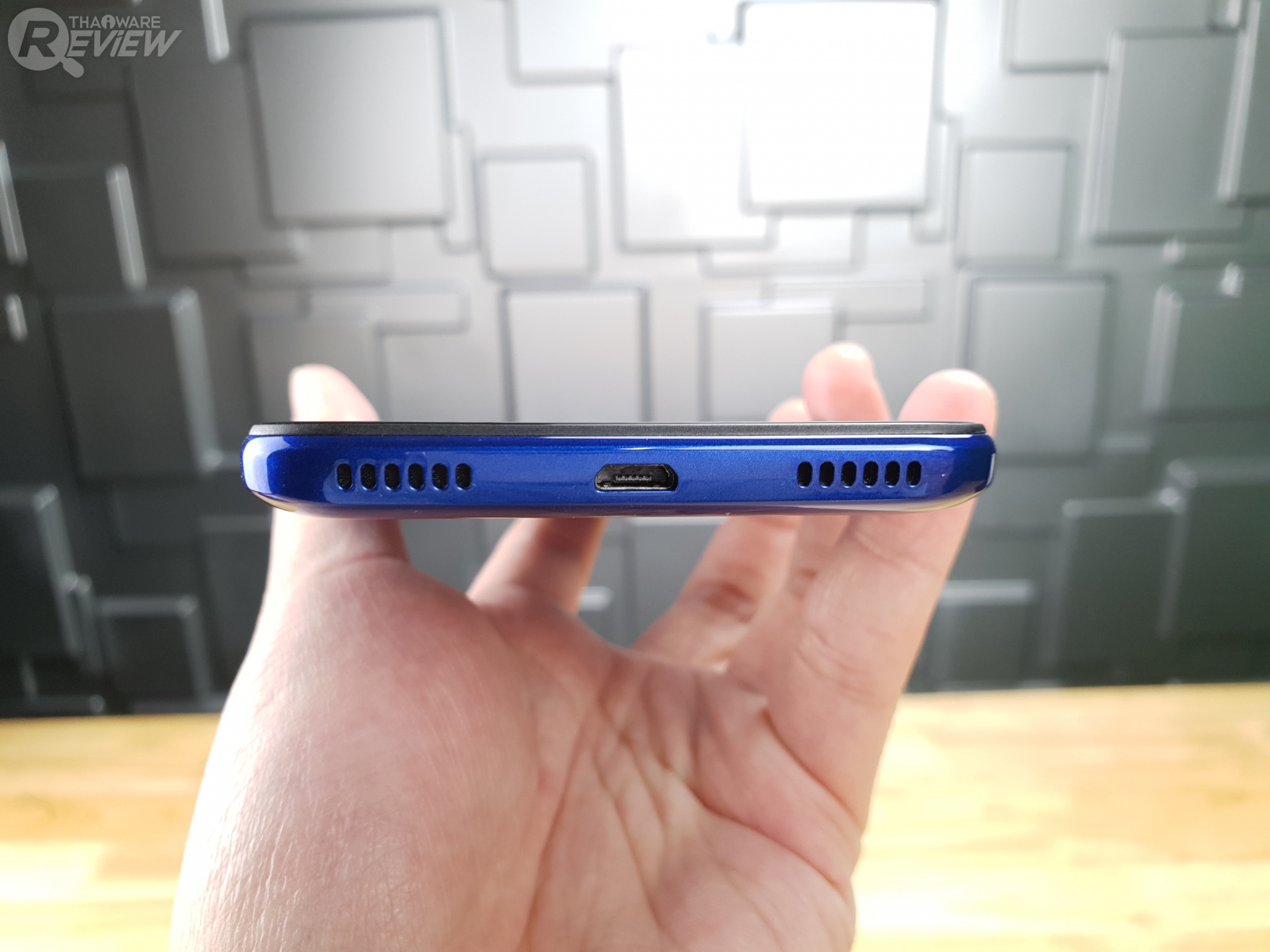 ด้านขวาเป็นปุ่มกดทั้งเพิ่ม/ลดเสียงและพาวเวอร์ ด้านซ้ายเป็นถาดซิมที่สามารถใส่ได้ทั้ง 2 ซิม+1 MicroSD พร้อมๆ กันไม่ต้องเลือกใส่ ด้านบนเป็นช่องสำหรับเสียบสายหูฟังแบบ 3.5mm ส่วนด้านล่างใช้ MicroUSB ในการชาร์จแบตฯ และรับส่งข้อมูลอยู่ มีช่องลำโพง 2 ด้าน ซึ่งด้านหนึ่งจะเป็นไมค์สำหรับสนทนา/อัดเสียง
