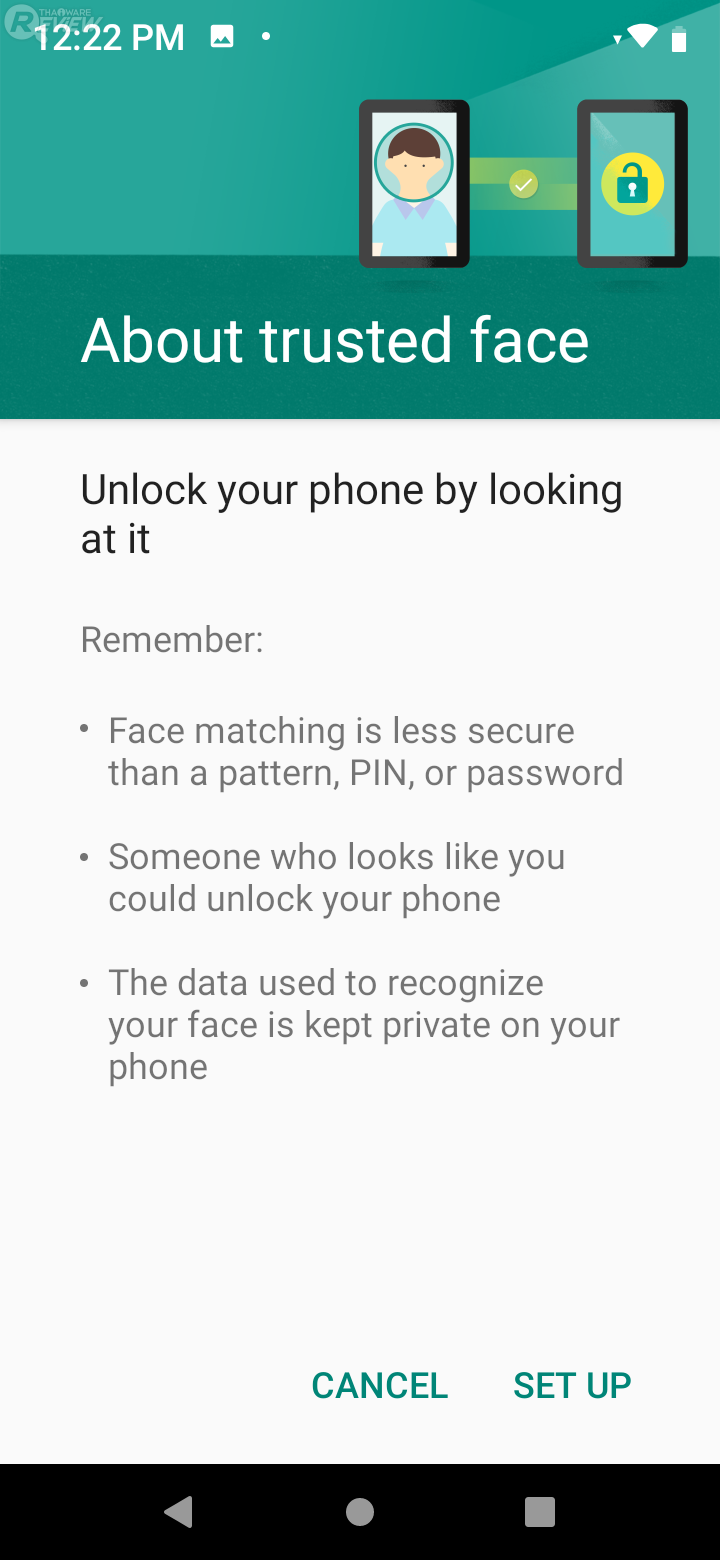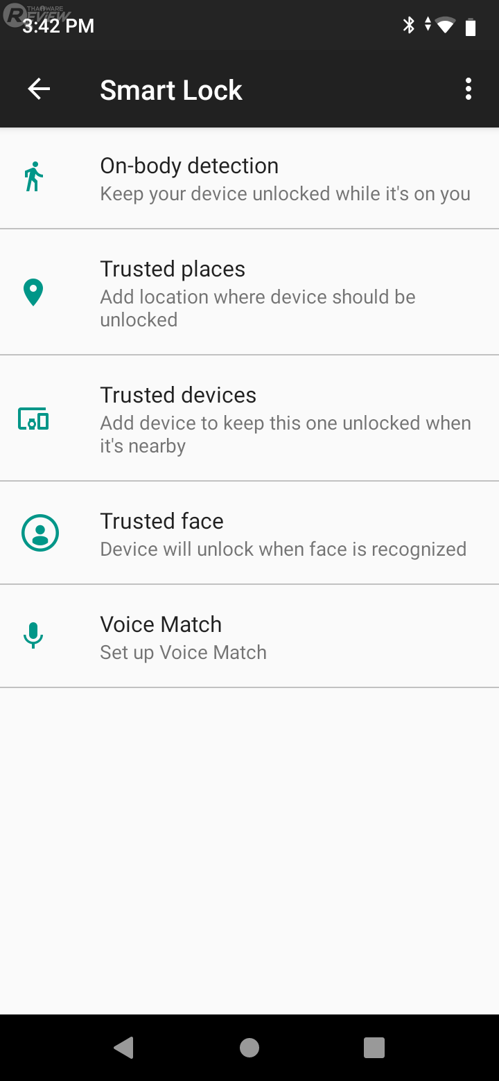 ที่น่าสนใจคือมีระบบ Smart Lock มาให้ใช้งานด้วย ทำให้เราสามารถปิดการล็อกเครื่องชั่วคราว เมื่อเราใช้มือถือเอง ไม่ว่าจะเป็นการคงสถานะการปลดล็อกเมื่ออยู่ระหว่างการใช้งาน การปลดล็อกอัตโนมัติ เมื่ออยู่ในสถานที่ เชื่อมต่อกับอุปกรณ์ หรือตรวจจับเสียงที่เชื่อถือได้ และถ้าหากว่าอยากจะใช้การปลดล็อกด้วยใบหน้า ก็จะมีฟีเจอร์ Trusted face อยู่ในนี้ แต่ก็ไม่ได้แม่นยำเท่ากับสมาร์ทโฟนราคาแพงๆ นะ โดยในเมนูก็จะมีแจ้งเตือนอยู่ว่า ความปลอดภัยน้อยกว่ารูปแบบอื่นๆ และคนที่หน้าคล้ายเราก็สามารถที่จะปลดล็อกหน้าจอได้