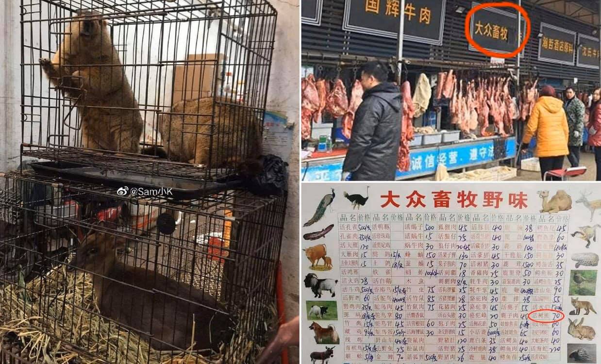 ภาพรายการสัตว์ที่วางจำหน่ายในตลาด Huanan จะเห็นได้ว่ามีทั้งบีเวอร์, กวาง, อูฐ, นกยูง, ลา, หมาป่า หรือแม้กระทั่งโคอาลา