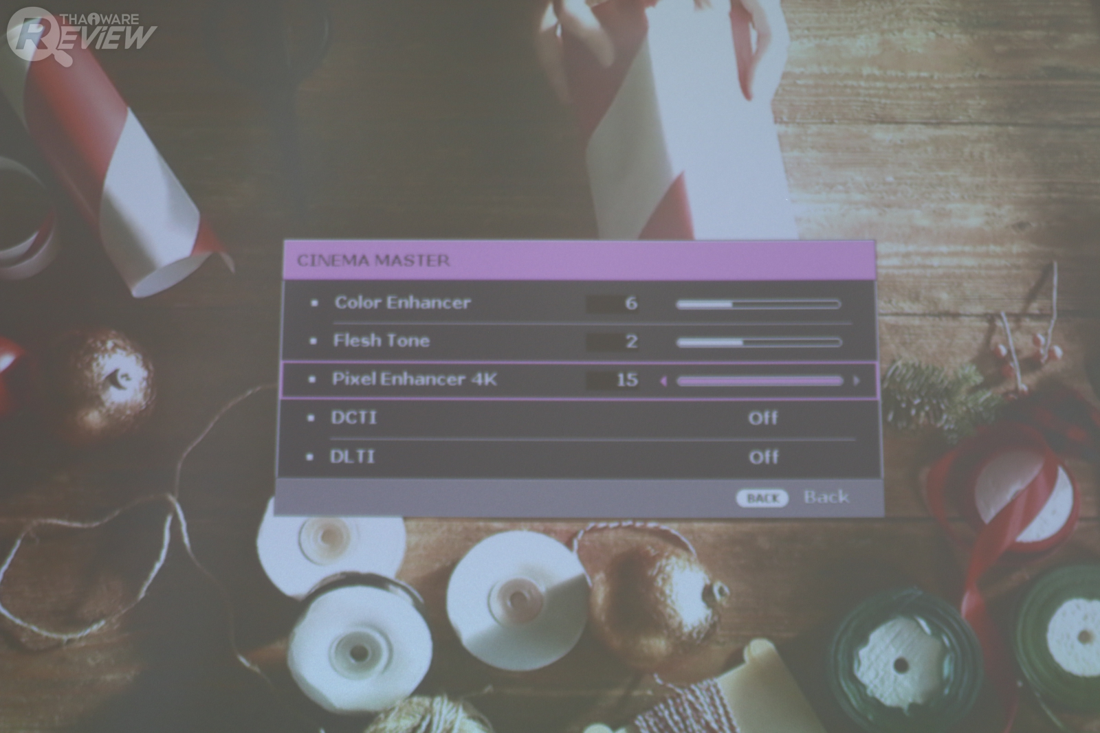 ใน Picture Mode จะมีโหมด Bright ที่ให้แสงมากกว่าปกติ แต่การบูสแสงจะทำให้ภาพออกโทนเขียวๆ หน่อย ซึ่งเอาจริงๆ แล้ว ก็หาพื้นที่มืดๆ ในการฉายโปรเจคเตอร์จะดีกว่า