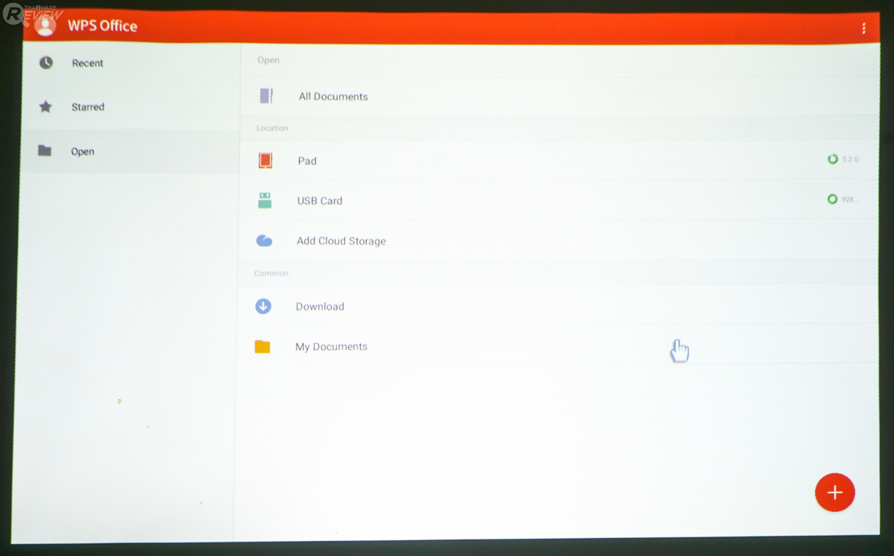 ด้วยความที่มันมีระบบปฏิบัติการ Android ในตัว ทำให้มันมีแอปพลิเคชันสำหรับจัดการกับไฟล์ต่างๆ ในตัวเลย การเปิดไฟล์เอกสาร เราไม่จำเป็นต้องใช้คอมพิวเตอร์ หรือสมาร์ทโฟนช่วย โยนไฟล์ใส่แฟลชไดร์ฟแล้วเปิดได้ทันที ด้วยแอป WPS Office