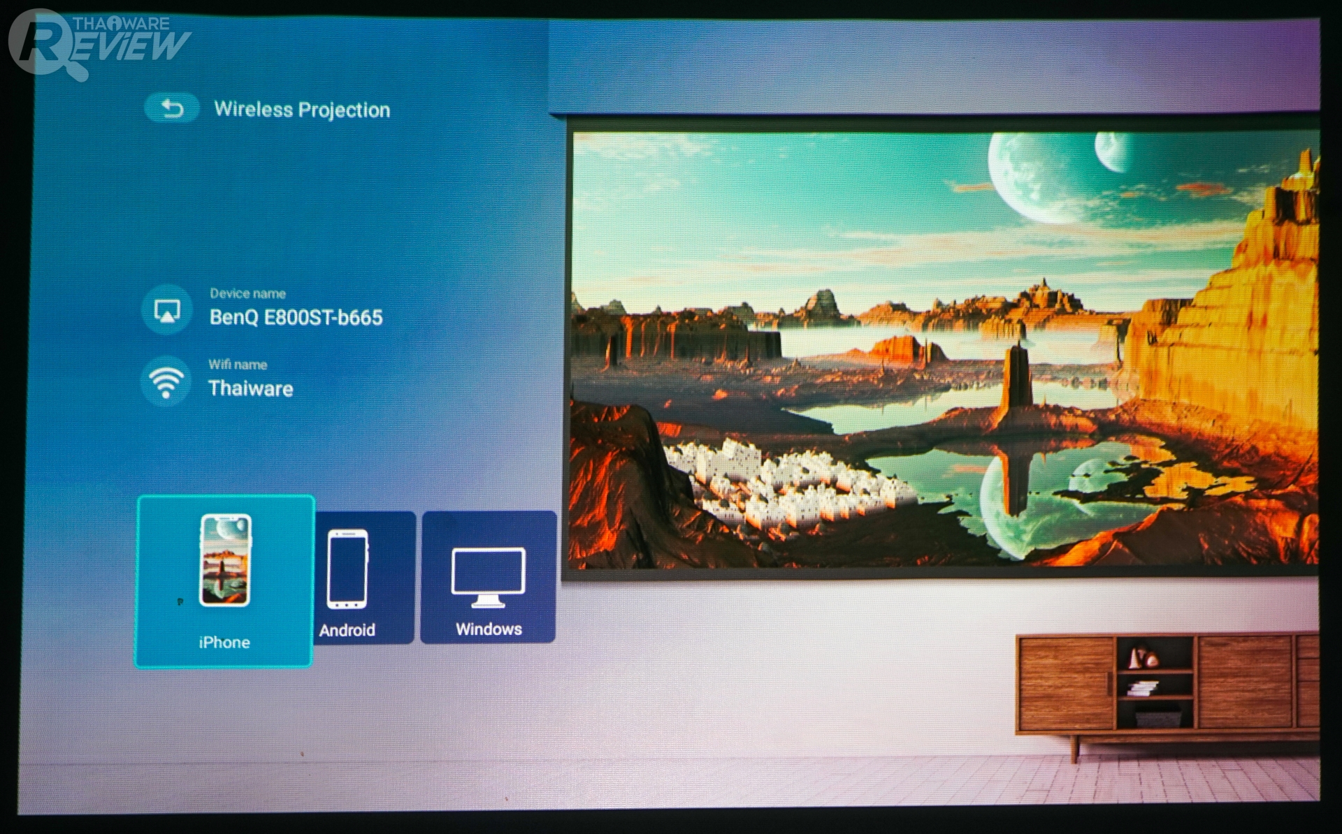 การส่งภาพจากอุปกรณ์ขึ้นไปฉายยังโปรเจคเตอร์ BenQ EW800ST แบบ Wireless (ไร้สาย) ความเจ๋งคือ มันรองรับทั้งจาก PC, Android และ iOS เลย โดยมีอยู่ทั้งหมด 2 รูปแบบ คือ