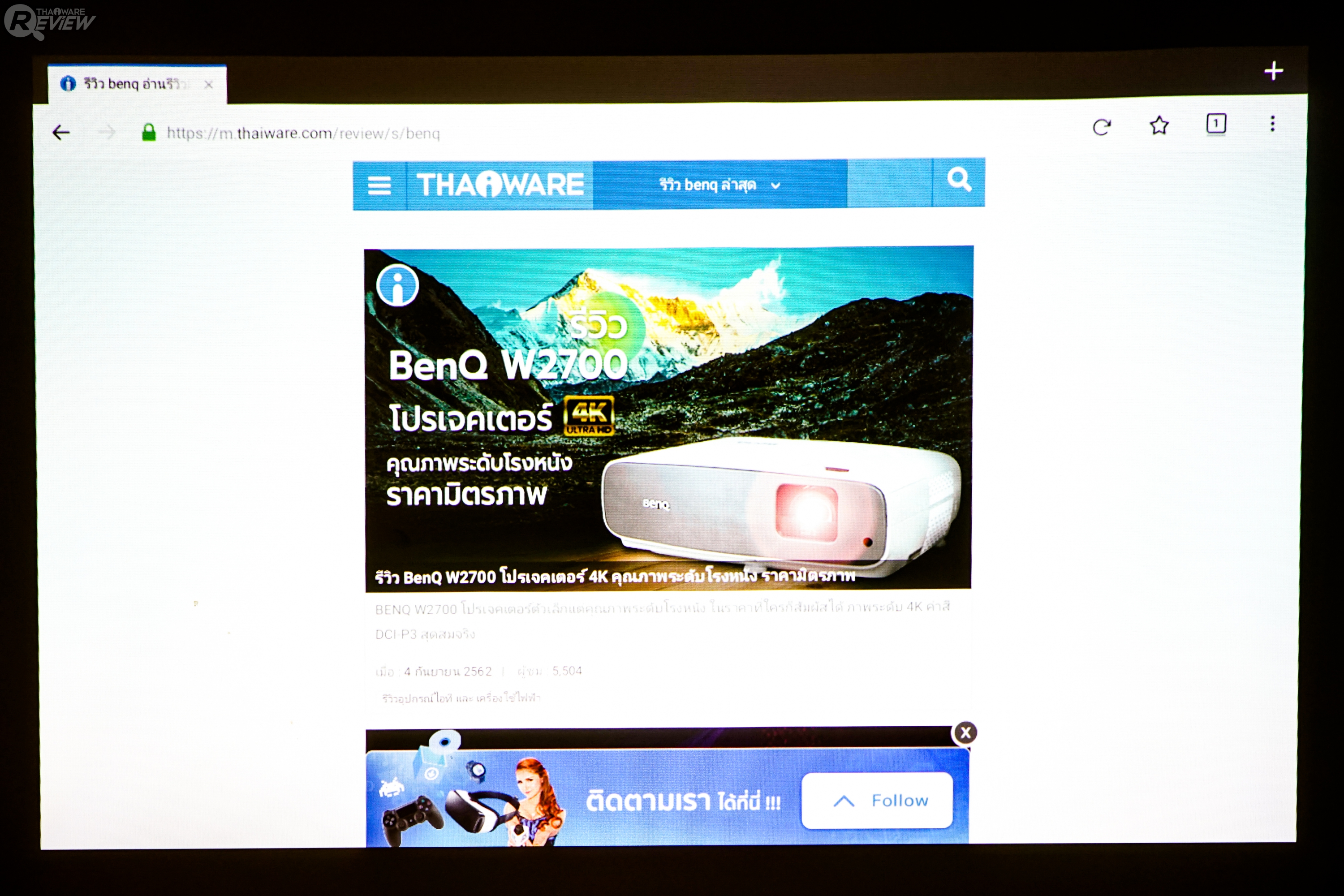 BenQ EW800ST มี Firefox ในตัว เราสามารถเปิดเว็บไซต์ได้เลย โดยไม่ต้องใช้คอมพิวเตอร์ หรือสมาร์ทโฟน อย่างไรก็ตาม การใช้รีโมทควบคุมค่อนข้างลำบาก แนะนำว่าควรหาเมาส์/คีย์บอร์ด มาต่อด้วย ซึ่งเราสามารถนำมาต่อที่พอร์ต USB ด้านหลังแล้วใช้งานได้ทันที