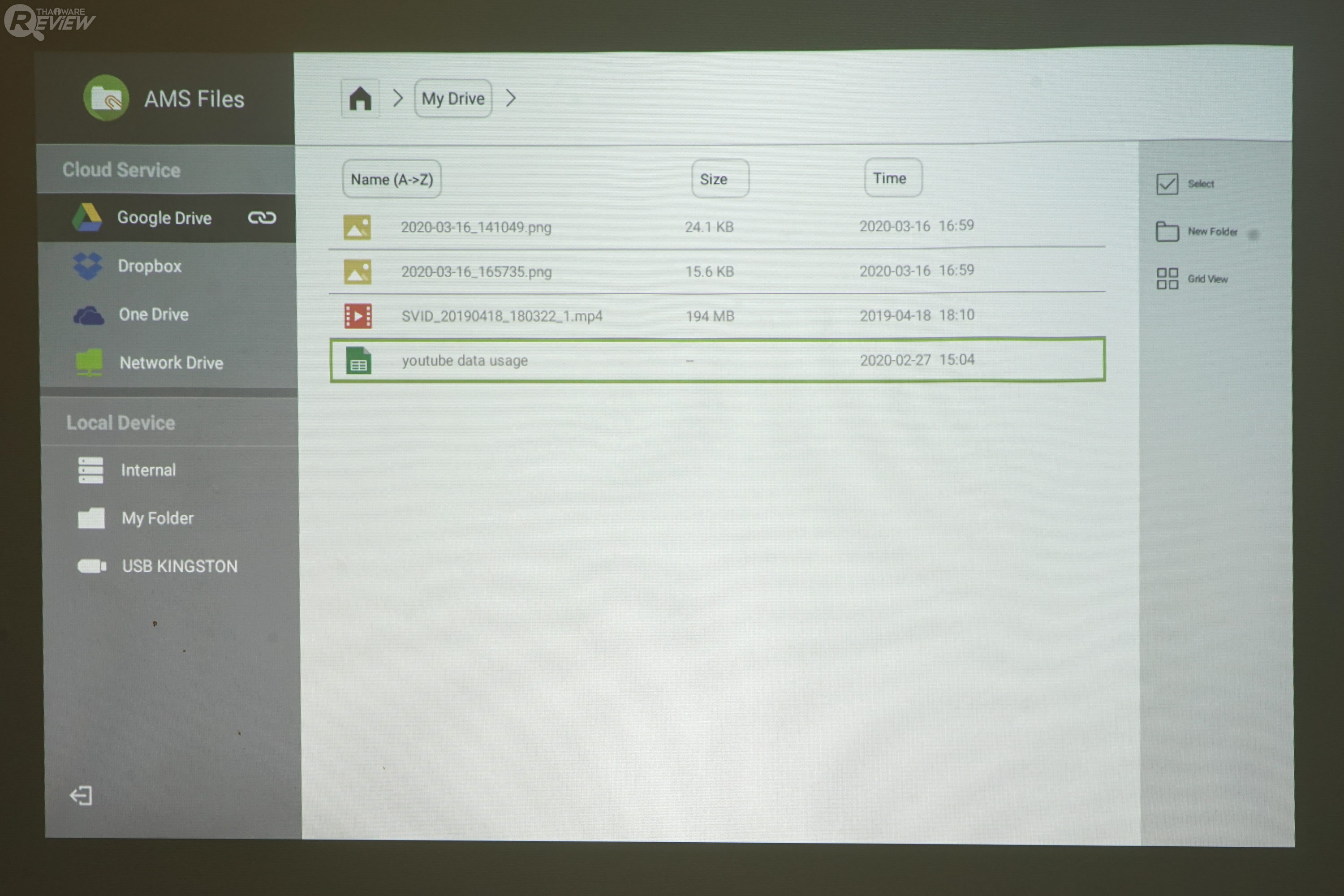 เมื่อผูกบัญชีเป็นที่เรียบร้อยแล้ว เราสามารถเปิดดูไฟล์ใน Cloud ได้เลยผ่านแอป AMS Files จุดนี้นับว่าสะดวกมาก ทำงานเสร็จ โยนไฟล์เข้า Cloud เปิดพรีเซนต์ในโปจเจคเตอร์ได้ทันที ลดขั้นตอนการเตรียมงานนำเสนอไปได้เยอะเลยล่ะ