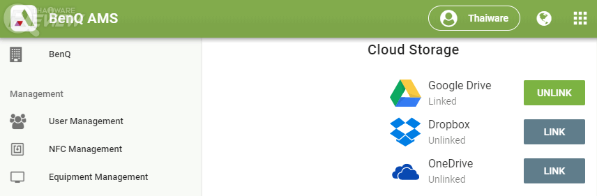 ขั้นตอนแรกเราจะต้องเข้าไปผูกบัญชี Cloud ที่เราใช้กับบัญชีของ BenQ ก่อนที่ service-portal.benq.com ในภาพด้านล่างนี้ คือ เราได้ผูกเข้ากับ Google Drive เป็นที่เรียบร้อยแล้ว