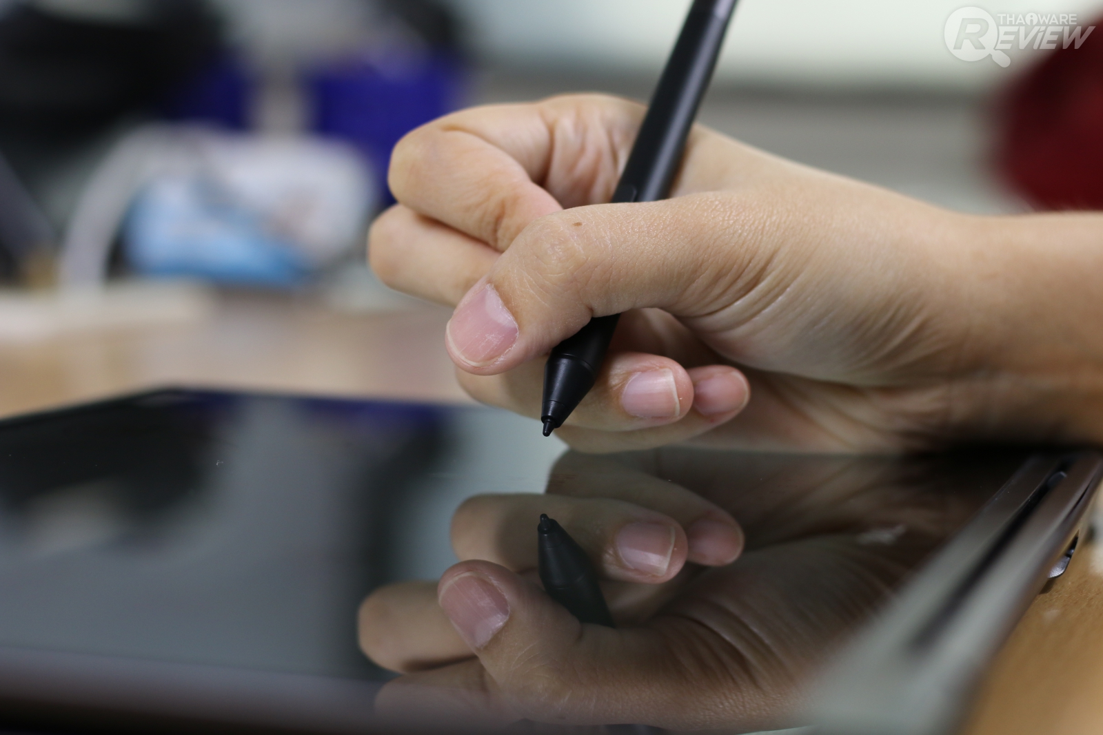 | 2. ที่เก็บปากกาอยู่ใต้จอ เก็บมิดชิดไม่ต้องกลัวหาย | 2. ปุ่มปากกาค่อนข้างตื้น ตอนจับปากกาอาจเผลอกดโดยไม่ตั้งใจ |