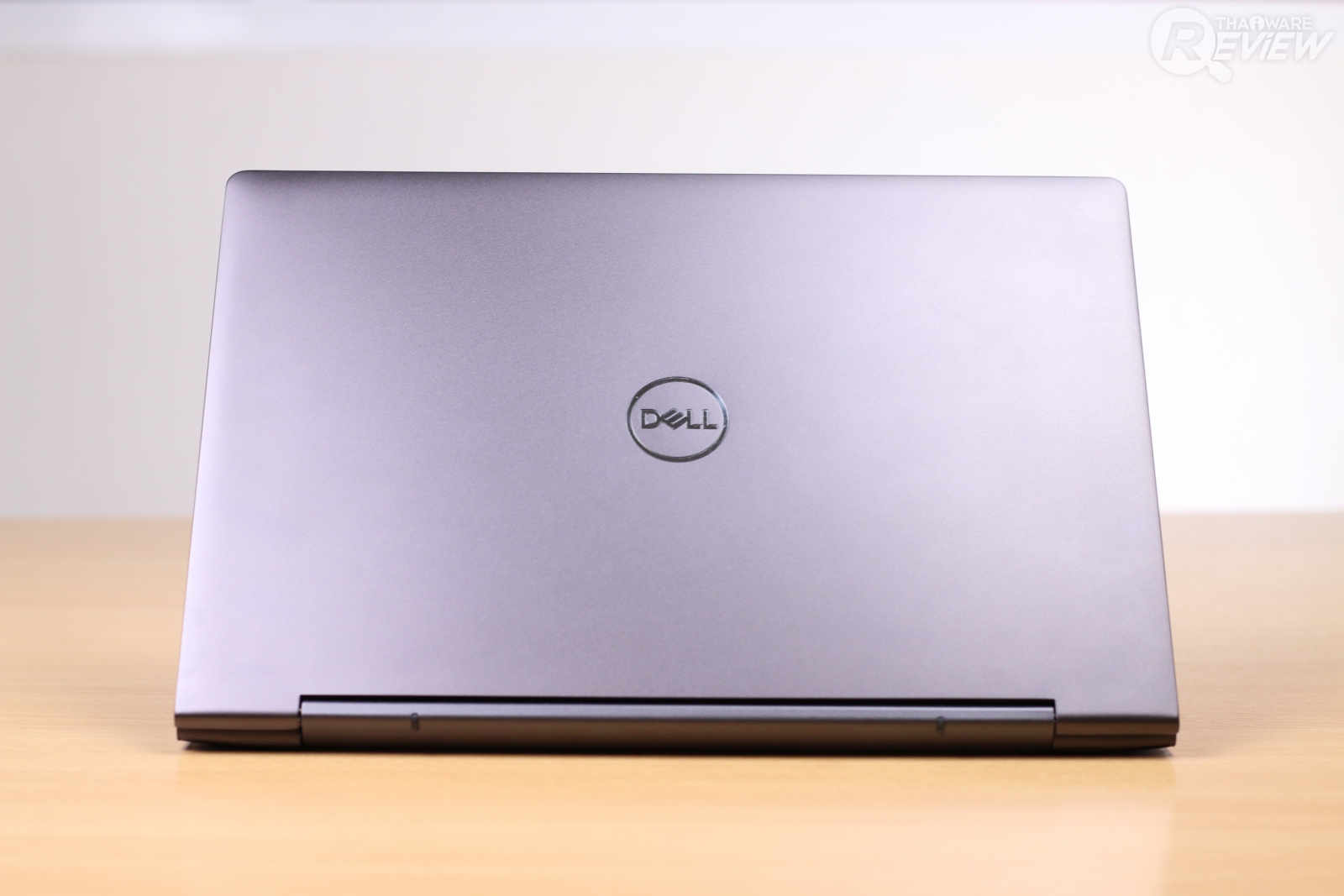 ตัวเครื่องถูกออกแบบให้มีดีไซน์เรียบหรู ด้วยฝาเครื่องแบบอลูมิเนียมสีดำด้านแต่มีความเรียบลื่นเมื่อจับถือ พร้อมโลโก้ Dell ตรงกลางฝาอันเป็นเอกลักษณ์ของอุปกรณ์ Dell ทุกรุ่น
