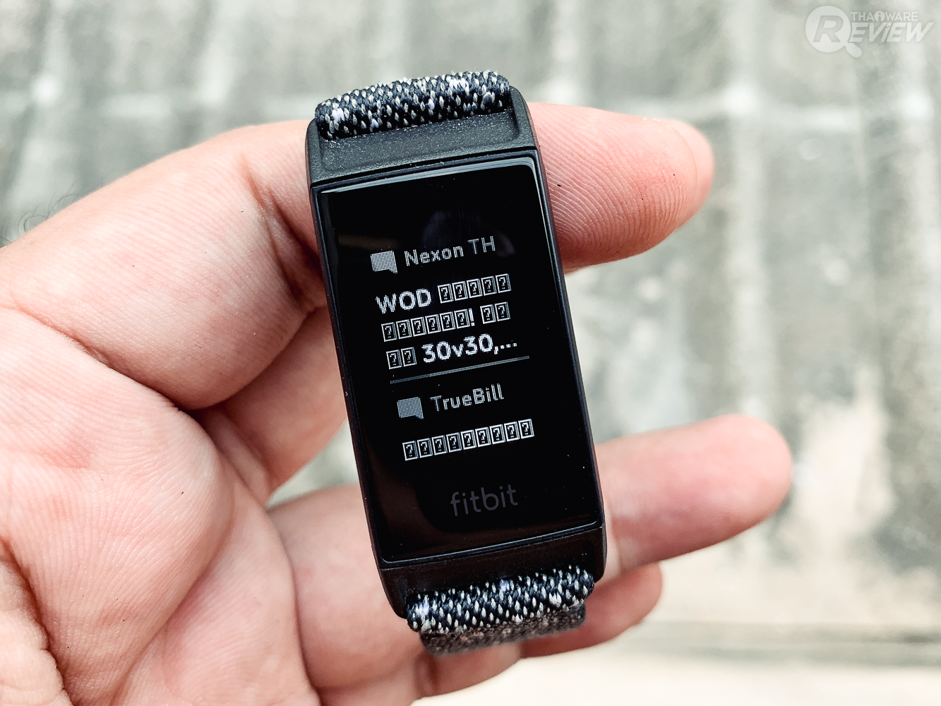 การปัดหน้าจอลง จะเป็นการเข้าสู่หน้าต่างแจ้งเตือน เท่าที่ลองใช้มาก็แจ้งเตือนเกือบทุกอย่างที่สมาร์ทโฟนของเราได้ตั้งแจ้งเตือนไว้นะ อย่างไรก็ตาม Fitbit Charge 4 ไม่รองรับการแสดงผลภาษาไทยนะครับ