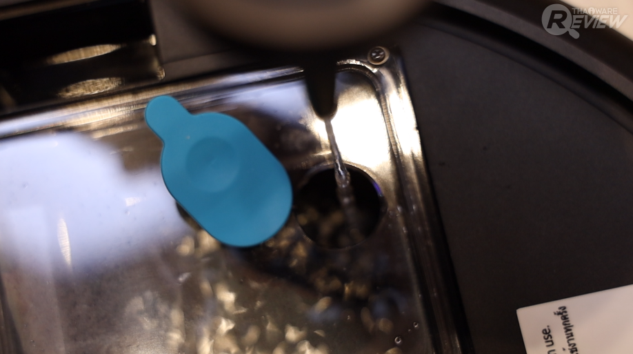 ดึงจุกยางสีฟ้าบนแทงค์ แล้วเติมน้ำเปล่าหรือน้ำยา LEGEE ลงไปในแทงค์ให้เต็มด้วยขวดที่ให้มาในกล่อง ระวังอย่าให้ปริ่มขึ้นมาถึงฝาปิดด้านบน ปิดจุกยางให้สนิท และปิดฝาบนของเครื่อง เพื่อเตรียมพร้อมใช้งาน