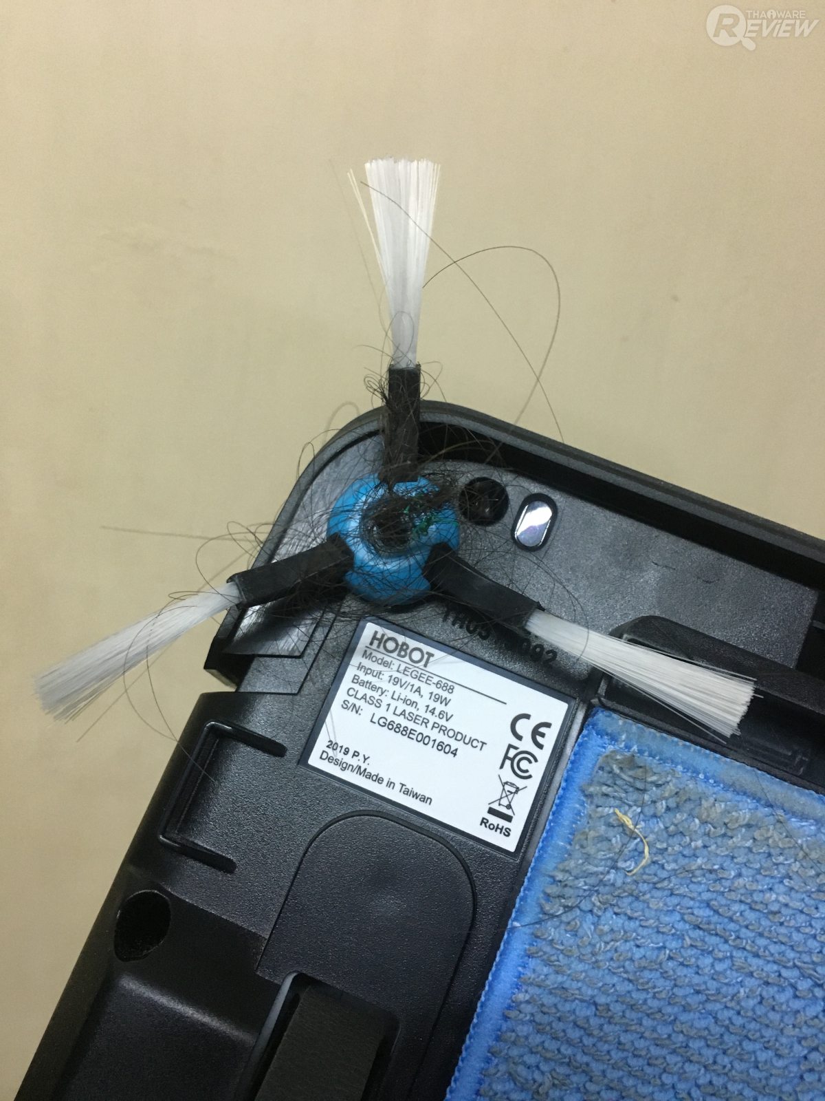 แปรงปัดของเครื่องในการทดสอบสามารถจัดการกับเส้นผมได้ดีไม่ว่าจะเป็นเส้นผมของผู้ชายหรือผู้หญิง ถึงแม้ว่าจะเป็นเส้นผมบางเส้นเล็ก แต่ตัวแปรงปัดก็สามารถปัดเข้าหาด้านหน้าของเครื่องเพื่อให้ส่วนดูดทำความสะอาดสามารถรับช่วงต่อไปได้ แถมถ้าปรับแบบแรงดูดสูง ยังสามารถดูดได้แม้กระทั่งเมล็ดข้าวสารเลยล่ะ และที่เป็นจุดสังเกตของการทดสอบในครั้งนี้คือ เวลาใช้งานจริงอาจมีเศษขนมตกที่พื้นและอาจจะมีมดเดินมาตามเศษขนมนั้น เครื่องก็ปัดทั้งมดทั้งเศษขนมเข้ามารวมกันด้วย