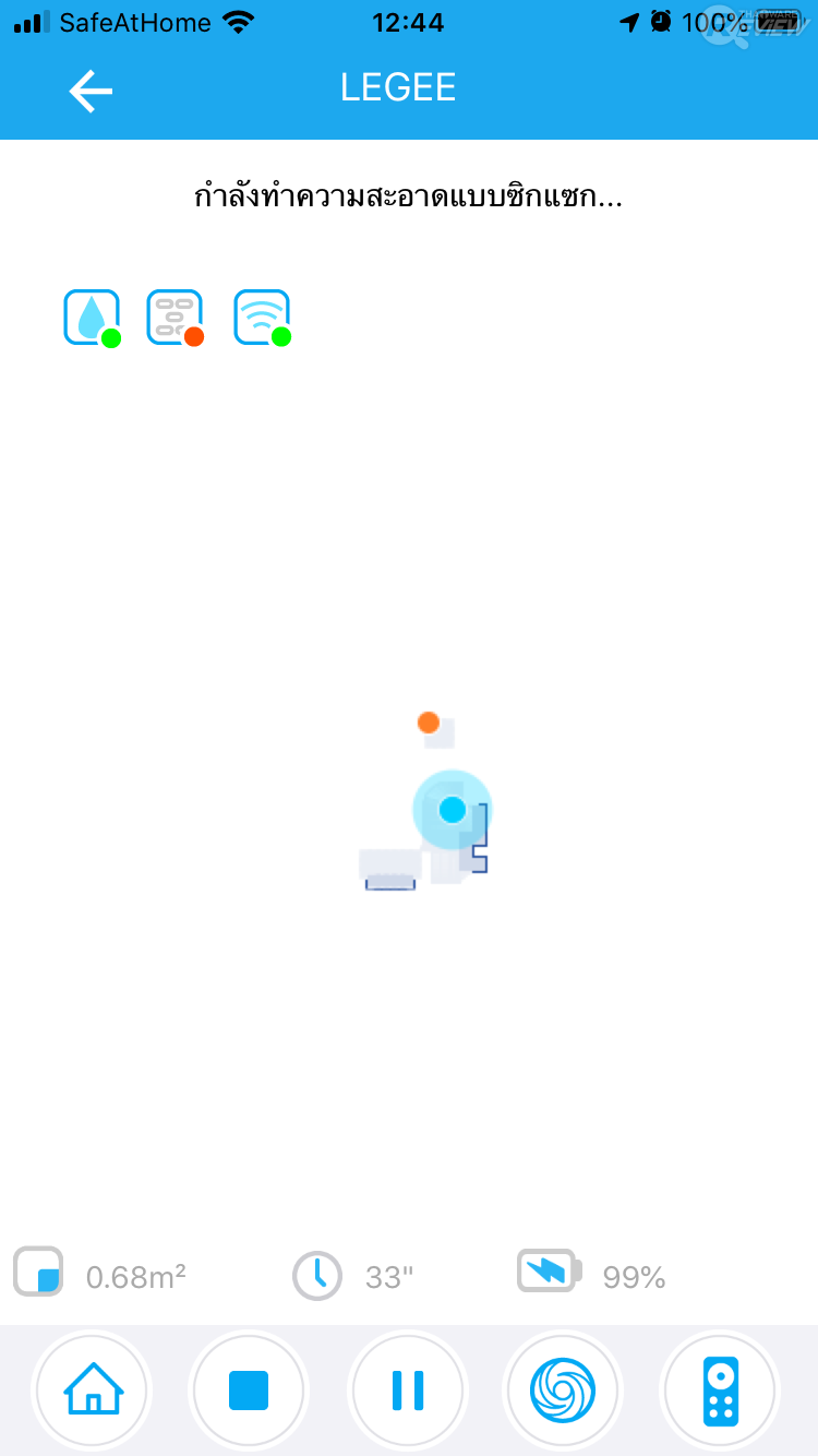 ด้านบนของตัวหุ่นยนต์จะมีไฟสถานะที่มีปุ่มควบคุมอยู่ 2 ปุ่ม ประกอบไปด้วย ปุ่มเริ่มการทำงาน และปุ่มกลับแท่นชาร์จ โดยปุ่มเริ่มทำงาน เราสามารถกดค้างเพื่อใช้จับคู่หุ่นยนต์กับสมาร์ทโฟนสำหรับการควบคุมผ่านแอปพลิเคชัน ได้ด้วย