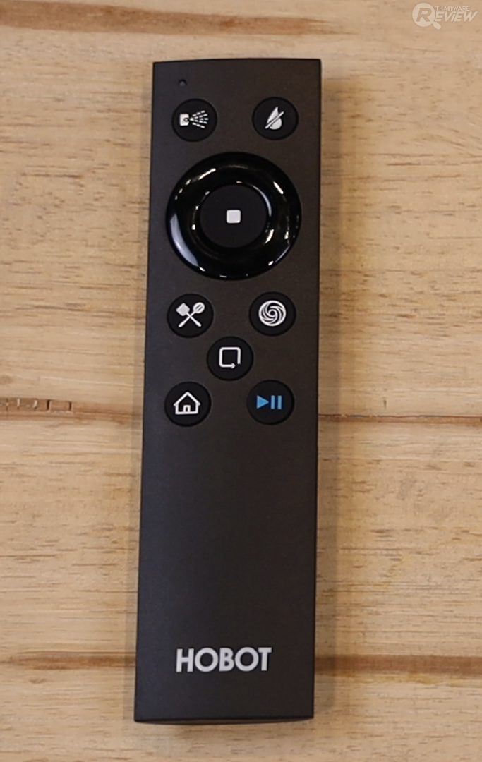 รีโมทของ หุ่นยนต์ดูดฝุ่น ถูพื้น HOBOT LEGEE - 688 ที่ให้มาจะมีฟังก์ชั่นการใช้งานเบื้องต้นค่อนข้างครบถ้วน ตั้งแต่ปุ่มฉีดน้ำ ปุ่มเปิด/ปิดระบบฉีดน้ำ ปุ่มหยุดทำความสะอาด โหมดห้องครัว โหมดทรงพลัง โหมดเลาะตามผนัง ปุ่มสั่งหุ่นยนต์ให้กลับแท่นชาร์จ และ ปุ่มเริ่ม/หยุดทำความสะอาดในโหมดอัตโนมัติ ซึ่งโหมดต่างๆ ดังกล่าวจะมีพูดถึงเป็นลำดับถัดไป