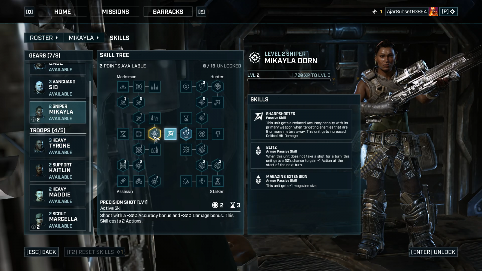 ตารางสกิล หรือ ทักษะของสไนเปอร์ ที่แบ่งเป็น 4 สาย