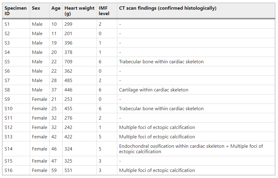 สำหรับการวิจัยในครั้งนี้ก็พบว่าชิ้นส่วนของกระดูกภายในหัวใจนั้นฝังอยู่บริเวณ Right Fibrous Trigone (กล้ามเนื้อของหลอดเลือดลิ้นหัวใจด้านขวา) ซึ่ง 2 ใน 3 ของกระดูกที่พบนั้นเป็นกระดูกแข็งเนื้อโปร่ง (Trabecular Bone) ส่วนกระดูกที่พบในอีกตัวหนึ่งเป็นกระดูกอ่อน (Cartilage Bone)