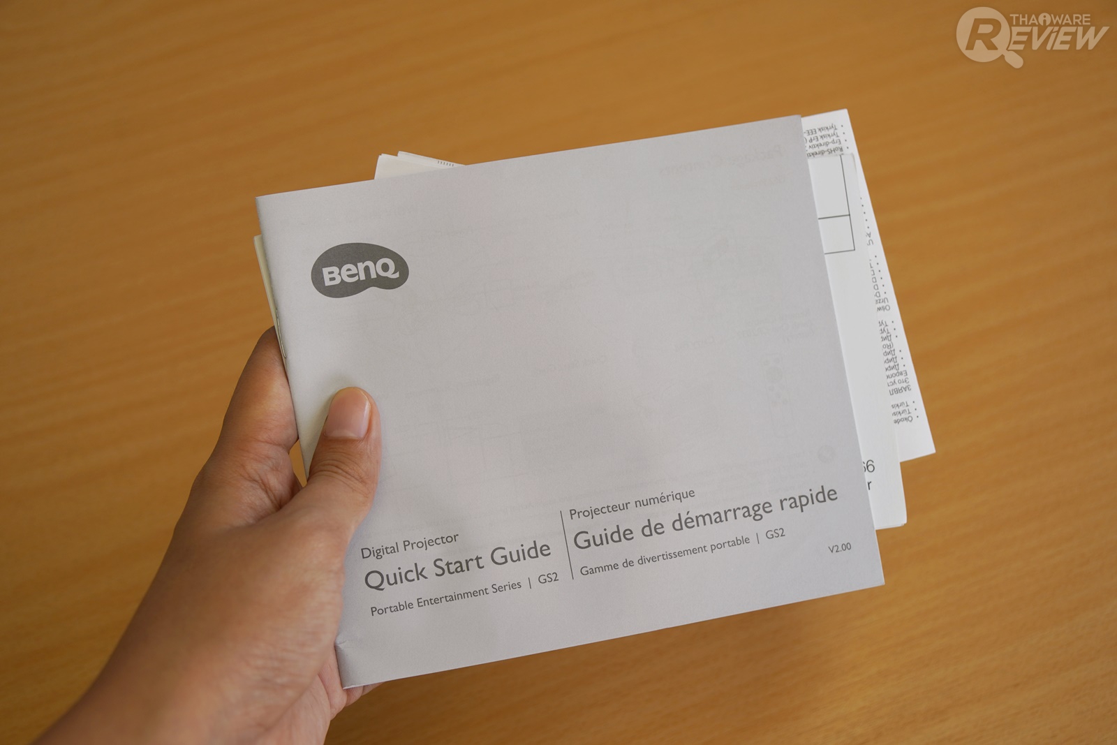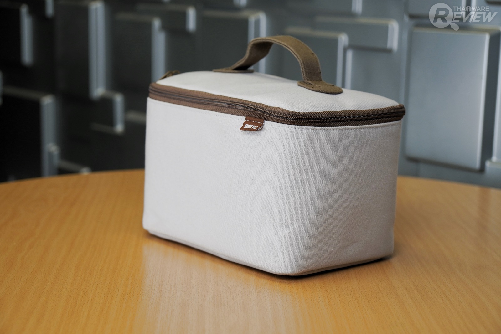 ในกล่องของโปรเจคเตอร์ BenQ GS2 มีเพียงชุดคู่มือเล่มเล็กและกระเป๋าหูหิ้วขนาดใหญ่ ซึ่งเจ้ากระเป๋าชิ้นนี้เป็นอุปกรณ์เสริมอย่างดีที่ช่วยให้พกพาโปรเจคเตอร์ชุดนี้ไปไหนมาไหนได้ และเมื่อเปิดกระเป๋าออกมา ก็จะพบกับตัวเครื่องของ BenQ GS2 และชุดชาร์จแบตเตอรี่ ทั้งสายไฟและอแดปเตอร์
