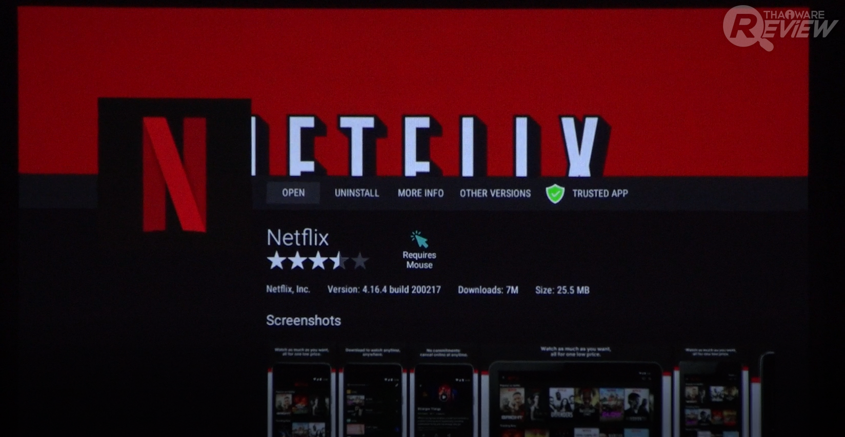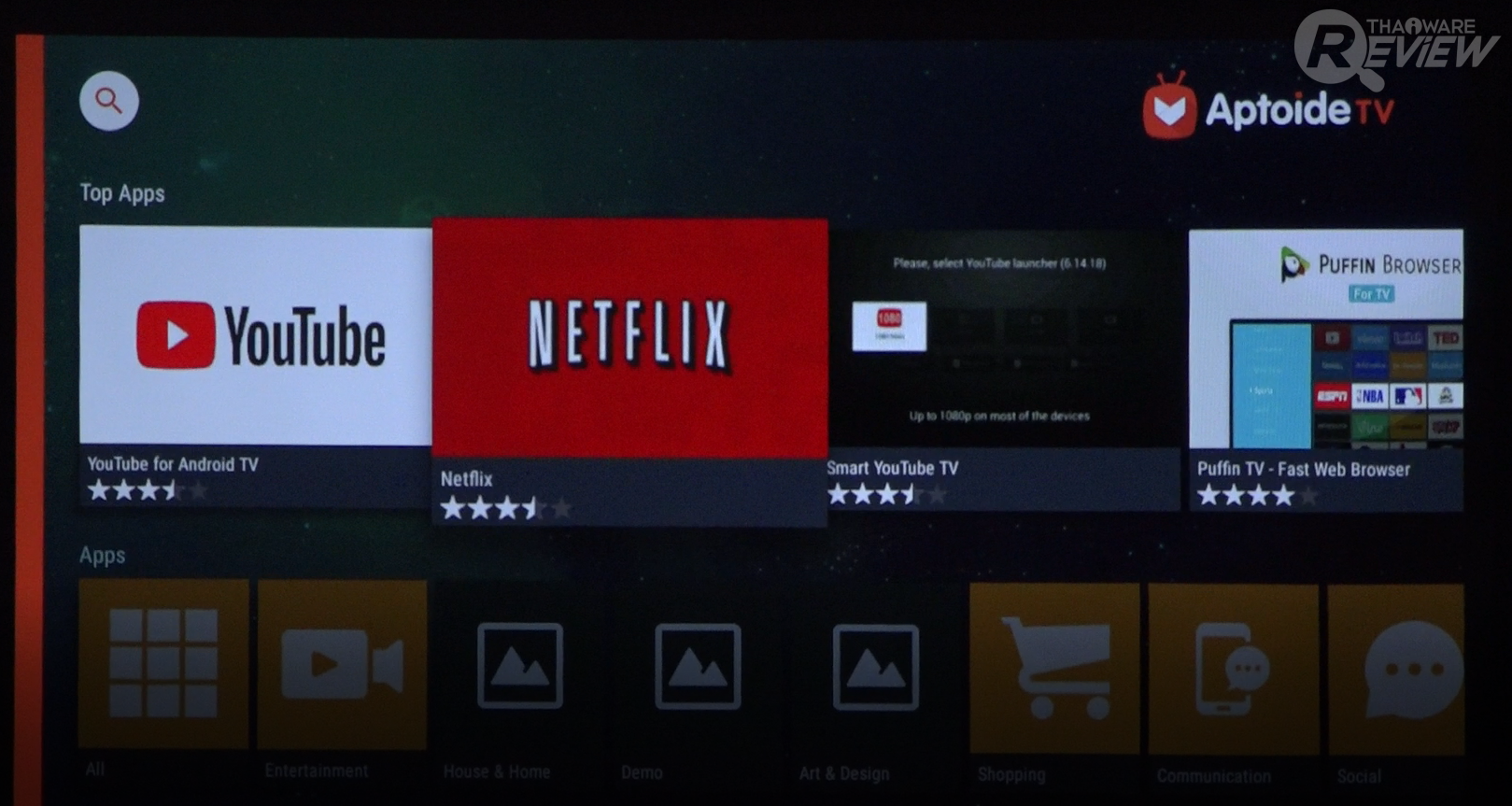 Aptoide TV - แอปพลิเคชันสำหรับฉายสตรีมมิ่งดังอย่าง Netflix ในตัวโดยไม่ต้องเชื่อมต่อกับอุปกรณ์ใดๆ สามารถเลือก ค้นหาภาพยนตร์ ซีรีส์และฉายได้ทันทีผ่านโปรเจคเตอร์เครื่องเดียว