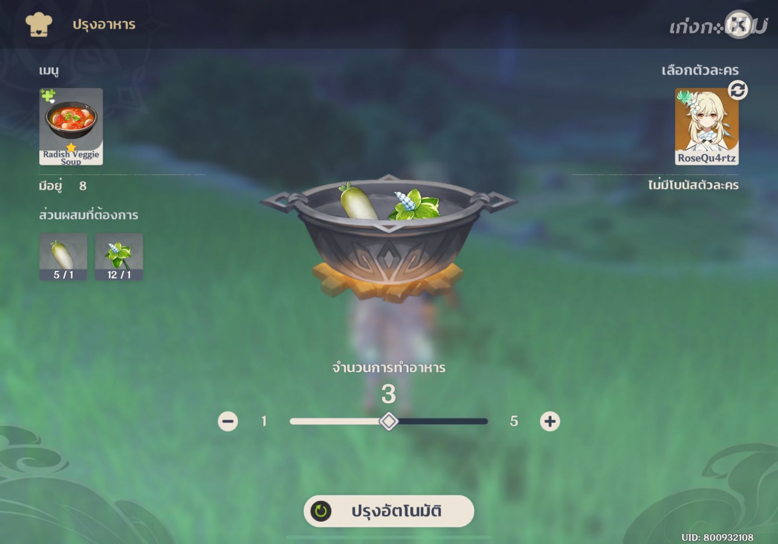 ถูกใจสายฟาร์ม & คราฟต์แน่นอนกับการที่เราสามารถผลิตของใช้เองได้ หนึ่งในฟีเจอร์ของ เกม Genshin Impact ที่ผู้เขียนชอบมากคือการทำอาหารที่มีวัตถุดิบมาตั้งในภาชนะทำอาหารให้เราเห็นด้วยว่า เมนูที่เราเลือกผลิตนั้นใส่อะไรลงไปบ้าง และมีมินิเกมออกมาให้กดกันตอนทำอาหารเล็กน้อยด้วยการให้ผู้เล่นรอกดเกจสีส้มเข้มให้ทัน เพื่อให้สามารถทำอาหารได้สำเร็จและเพิ่มค่าความชำนาญในการทำอาหาร