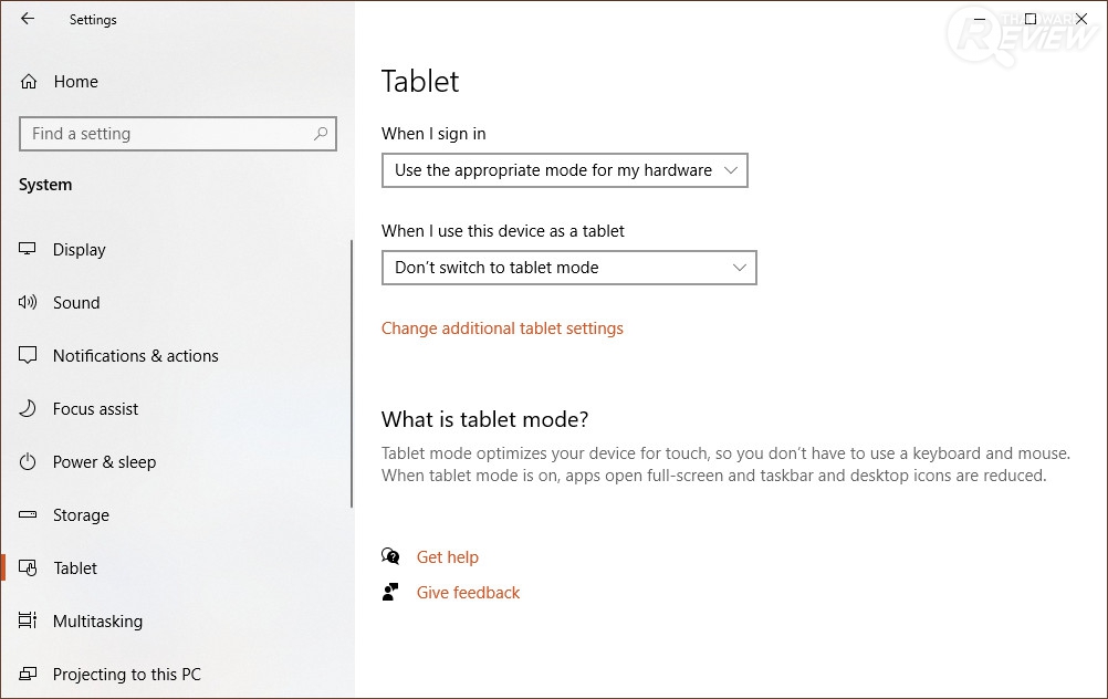 แต่ใน Windows 10 เวอร์ชันใหม่ จะสลับให้เลยอัตโนมัติ แต่เราก็สามารถตั้งค่าให้มันถามก่อนเปลี่ยนเหมือนเวอร์ชันเก่าได้เช่นกันนะ โดยไปที่ Settings → System → Tablet