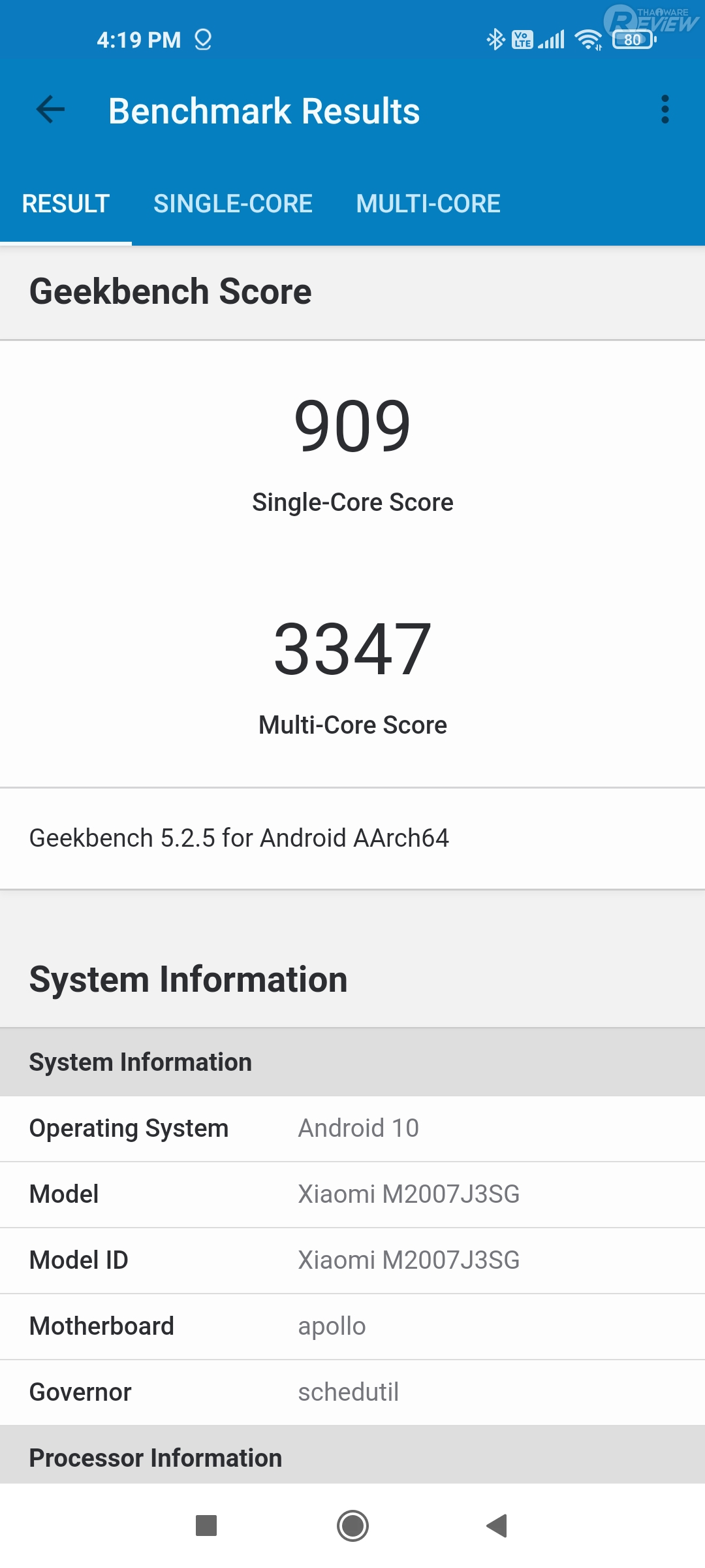 มือถือ Mi 10T Pro 5G มีอีกจุดเด่นที่ระบบประมวลผลภายใน อย่างชิปเซ็ต Snapdragon 865 5G, ระบบปฏิบัติการ Android 10 ที่ครอบทับด้วย MIUI 12, RAM 8 GB และความจุที่มีให้เลือกทั้ง 128 GB และ 256 GB (เครื่องทดสอบที่ได้มามีความจุ 128GB) จากการทดสอบทั้งการเล่นเกมที่รองรับรีเฟรชเรต 144 Hz อย่าง Real Racing 3, Temple Run 2 และ Cytus II พบว่าแสดงภาพกราฟิกลื่นไหลดี ตอบสนองการสัมผัสได้รวดเร็วทันใจ ส่วนการทดสอบด้วยแอปพลิเคชัน 3DMark และ Geekbench 5 ก็ได้คะแนนที่ค่อนข้างสูง