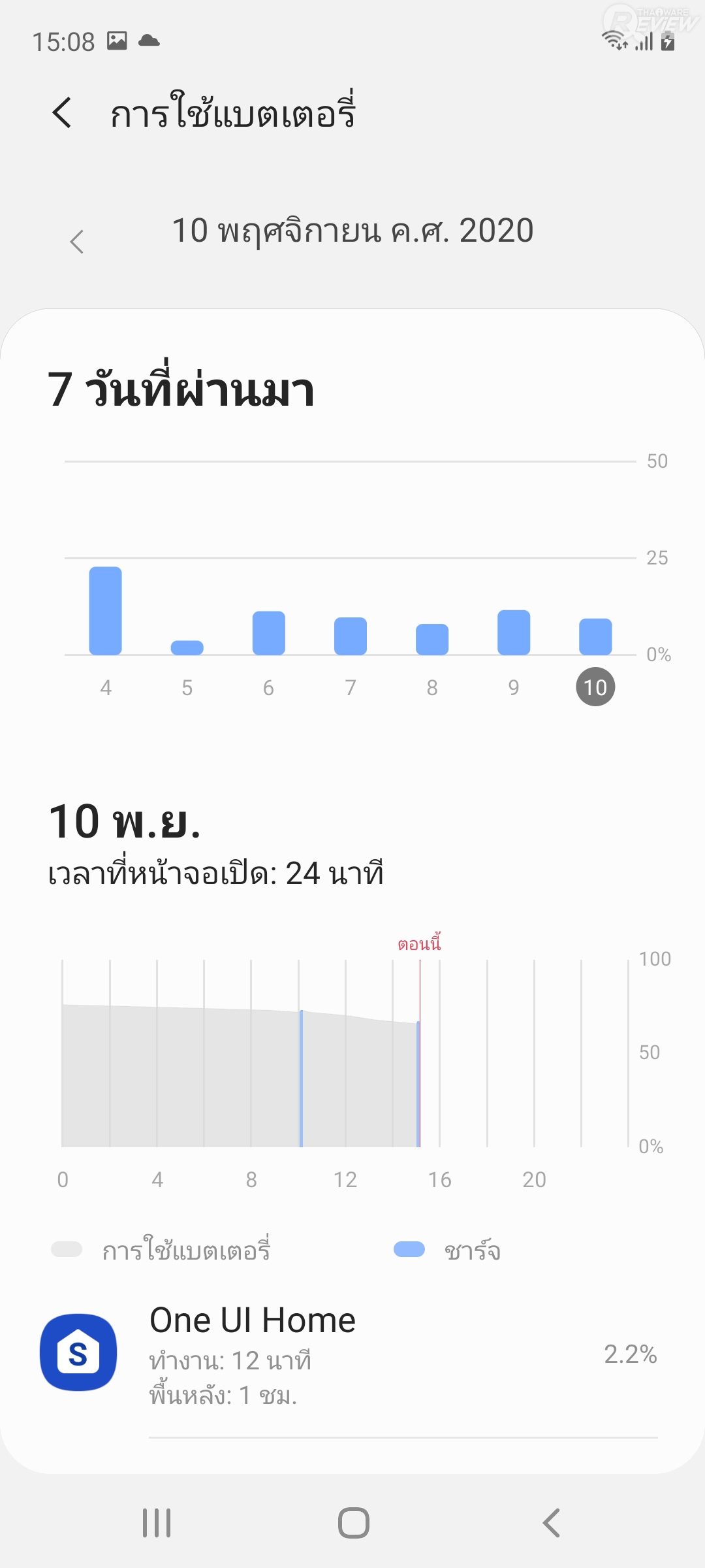 มือถือ Samsung Galaxy S20 FE ใส่แบตเตอรี่ความจุ 4,500 มิลลิแอมป์ มาให้ แม้สมาร์ทโฟนหลายรุ่นจะข้ามไปถึง 5,000 มิลลิแอมป์ แล้วก็ตาม แต่แบตเตอรี่ความจุเท่านี้ก็ยังอยู่ในระดับที่สูง นอกเหนือจากนี้ ยังมีกราฟแสดงค่าแบตเตอรี่เพื่อพิจารณาระยะเวลาการใช้งานว่าจะอยู่ได้นานเท่าไหร่ บางคนที่เล่นเกม เล่นโซเชียลหนักๆ ก็อาจะอยู่ได้ 1 วันพอดีๆ หรือน้อยกว่านั้น แต่ถ้าใช้งานไม่บ่อยก็อาจจะอยู่ได้นานกว่านี้