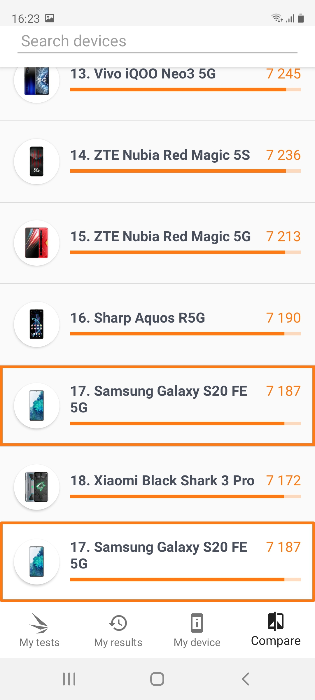 มือถือ Samsung Galaxy S20 FE มีระบบประมวลผลที่เจ๋งไม่แพ้พี่ๆ ในซีรีส์ Galaxy S20 รุ่นอื่นๆ เลย ทั้งชิปเซ็ต Snapdragon 865 ที่อยู่ในมือถือเรือธงหลายรุ่น ร่วมกับระบบปฏิบัติการ Android 10, One UI 2.5 มี RAM 8GB และความจุตัวเครื่อง 128GB (เพิ่มหน่วยความจำด้วย microSD ได้) ซึ่งผลคะแนนที่ได้จากการทดสอบด้วยแอปพลิเคชัน Geekbench 5 และ 3D Mark พบว่าคะแนนอยู่ในอันดับต้นๆ เมื่อเทียบกับมือถือรุ่นอื่นๆ