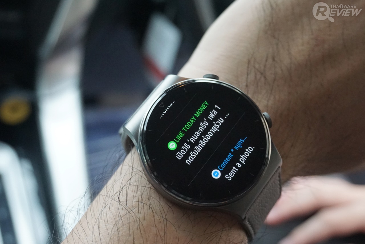 หากต้องการรับแจ้งเตือนจากสมาร์ทโฟน เพียงเข้าไปเปิดการใช้งานในเมนู Devices และเลือกให้ Notification ของอุปกรณ์นั้นๆ เปิดรับแจ้งเตือน ซึ่งการทดสอบบนนาฬิกา HUAWEI Watch GT 2 Pro นั้น สามารถเลือกแอปพลิเคชันที่ต้องการแจ้งเตือนบนนาฬิกาได้ตามสะดวก มีความรวดเร็ว แจ้งเตือนทันที แต่ขนาดตัวอักษรแสดงผลการแจ้งเตือนบนหน้าปัดนาฬิกานั้นตัวเล็กเกินไปเมื่อเทียบกับพื้นที่หน้าปัดทั้งหมด แต่ถ้าแสดงข้อความยาวๆ สามารถแสดงได้เต็มหน้าจอ ส่วนการเช็คแจ้งเตือนย้อนหลัง ให้ปัดหน้าจอจากด้านล่างขึ้นบน ก็จะมีหน้ารวบรวมแจ้งเตือนทั้งหมดขึ้นมาให้เช็คง่ายๆ
