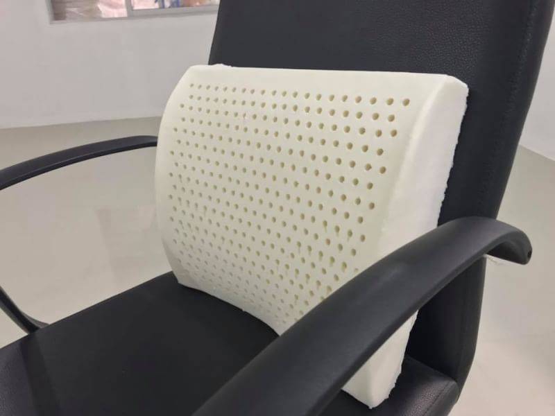 หากวัสดุของเบาะผลิตจากยางพาราแท้ เบาะจะมีความนิ่มอยู่ในตัวแต่จะไม่ยวบลงมากนักเมื่อถูกกดทับ มีความยืดหยุ่นสูง และคืนตัวไวกว่าแบบเมโมรีโฟม เหมาะสำหรับผู้ที่ต้องการเบาะที่ค่อนข้างมีรูปทรงที่คงที่ตลอดเวลา ขยับตัวไม่บ่อย และถ้าห้องแอร์เย็นมาก การใช้หมอนรองหลังแบบยางพาราก็จะช่วยรักษาอุณหภูมิร่างกายได้ดี