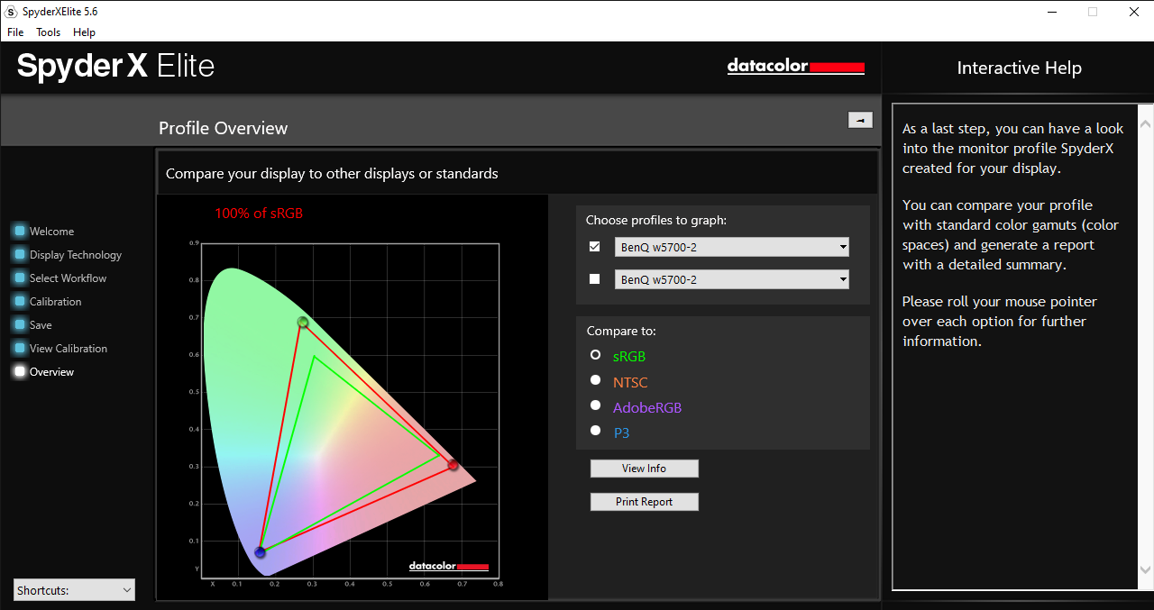 ค่าสี sRGB ของโปรเจคเตอร์ BenQ W5700