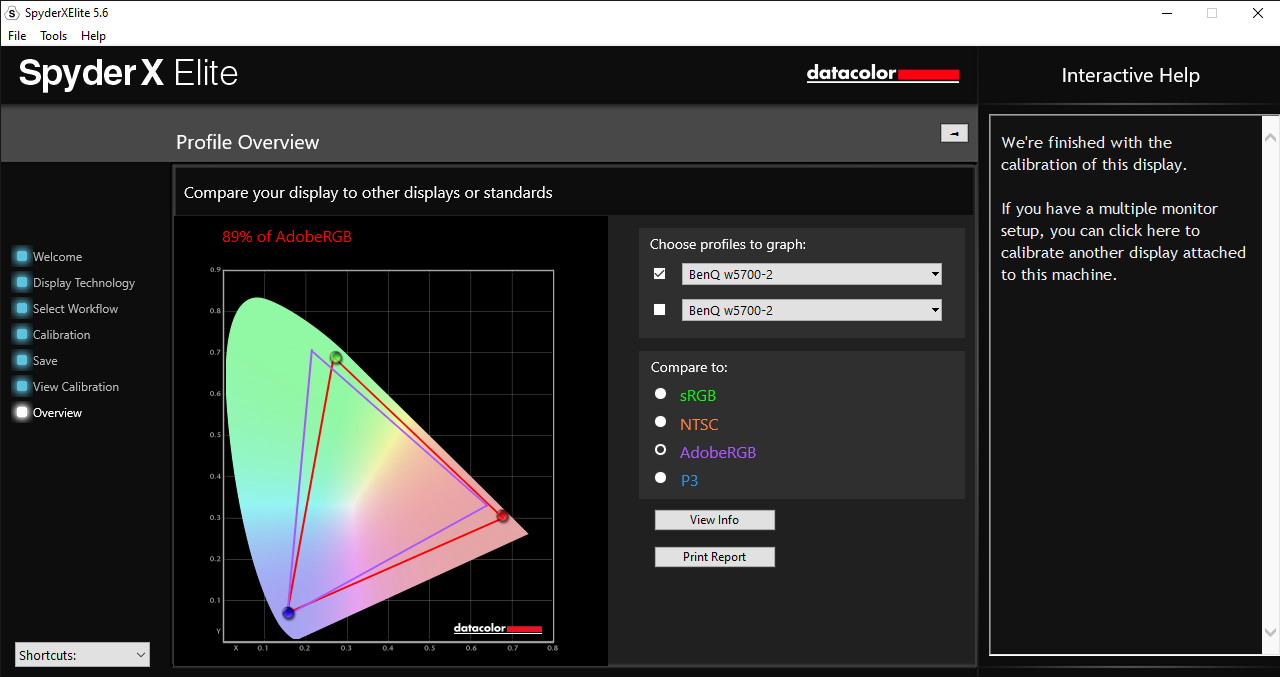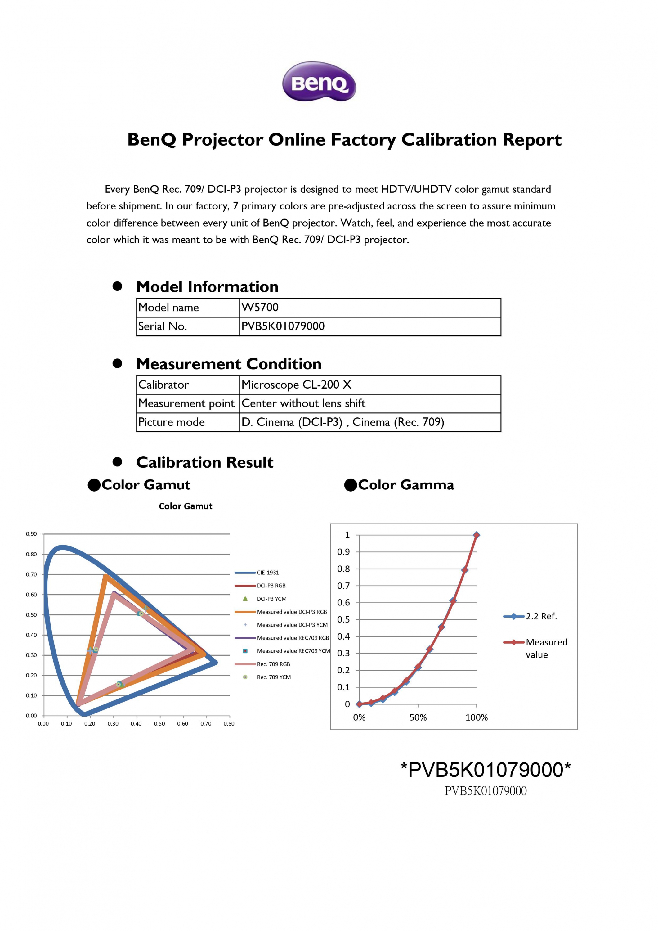 ส่วนความแม่นยำของสี ทางไทยแวร์ได้ทำการทดสอบโปรเจคเตอร์ BenQ W5700 ด้วยโปรแกรม SpyderXElite 5.6 จากค่าสีที่ได้ พบว่าโปรเจคเตอร์รุ่นนี้ให้ค่าสีที่แม่นยำมาก ๆ ด้วยค่า sRGB 100%, 86% of NTSC, 89% of AdobeRGB, และ 97% of P3 เรียกได้ว่าแสดงสีสันของภาพมีความเที่ยงตรงสูง