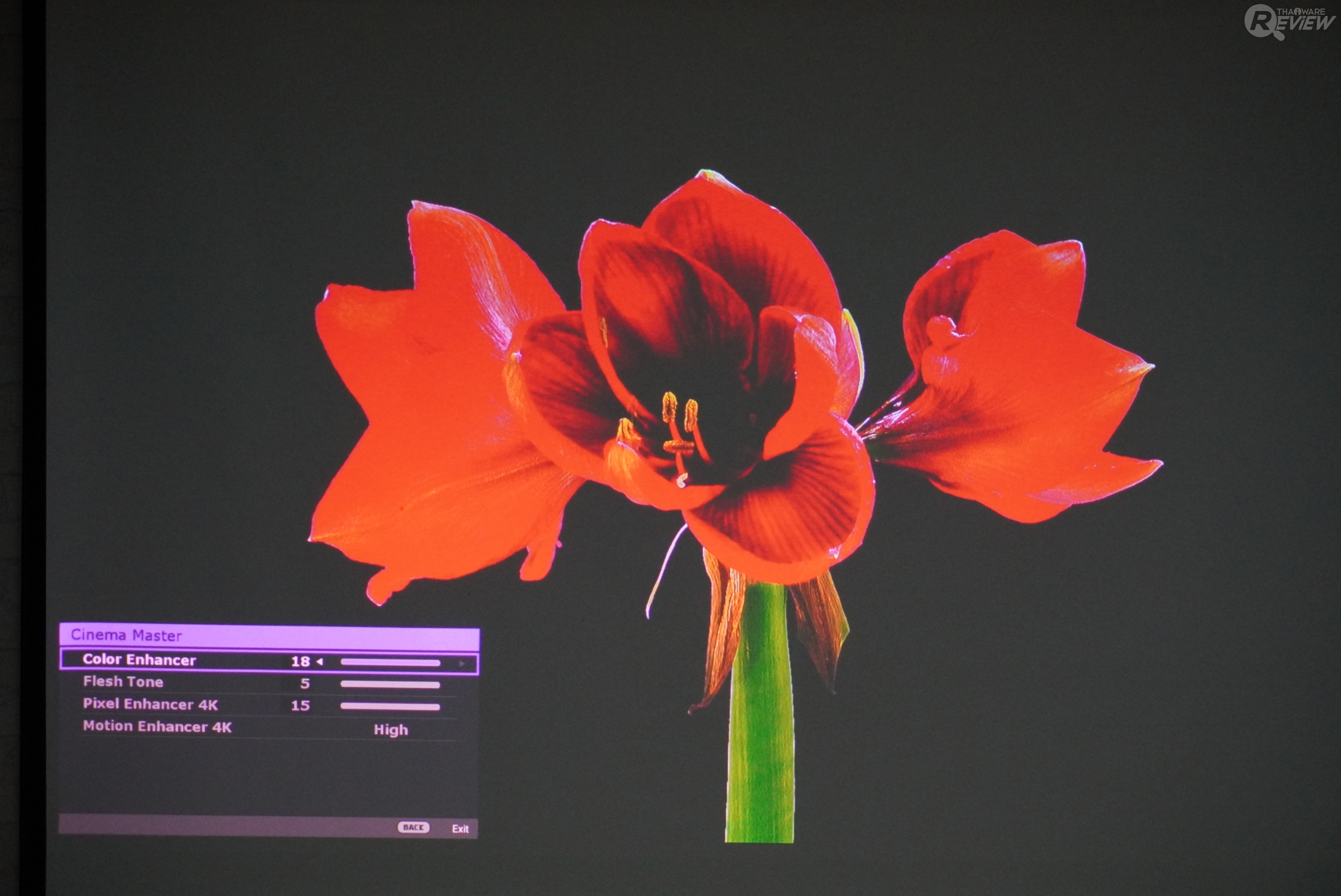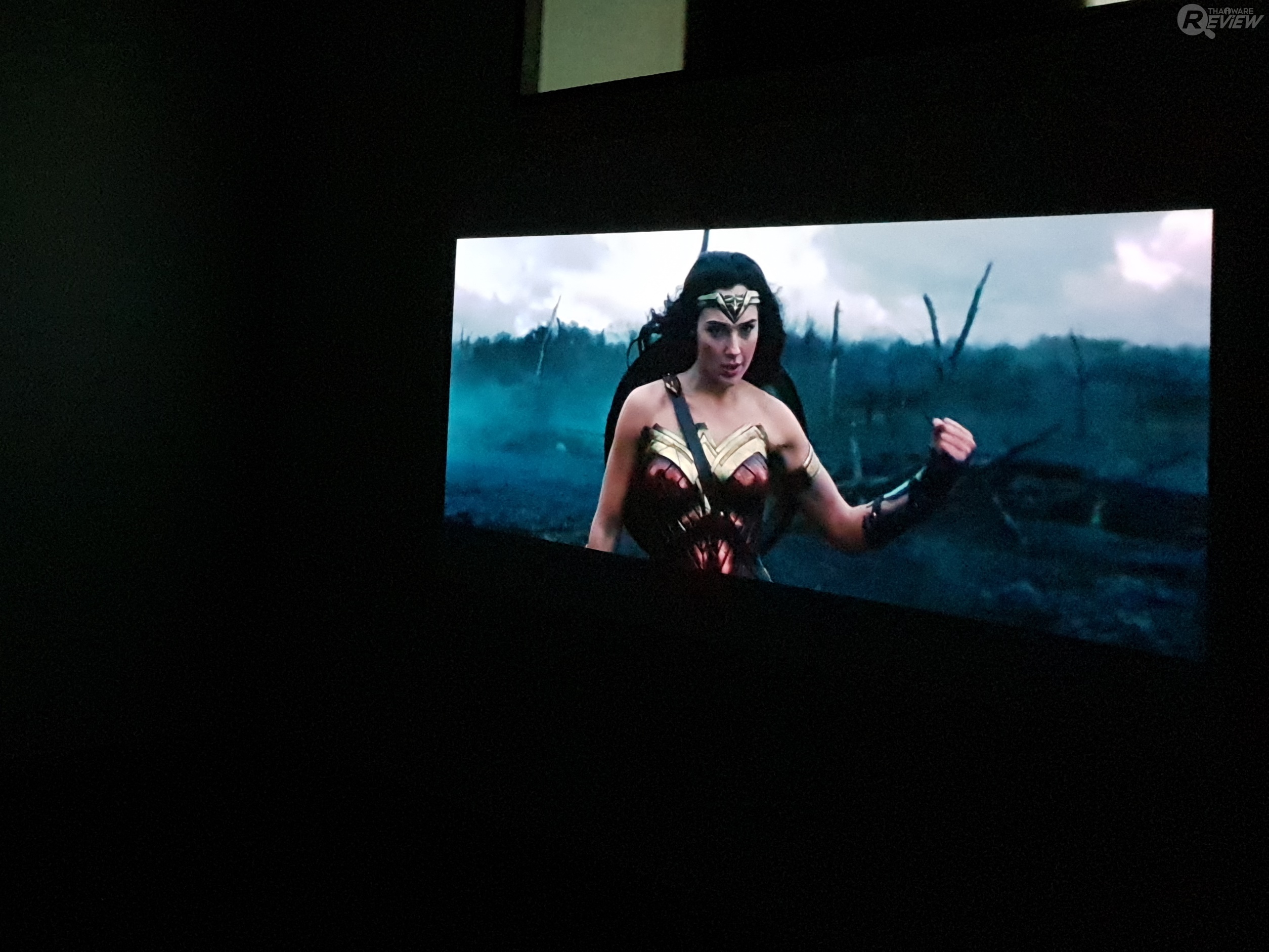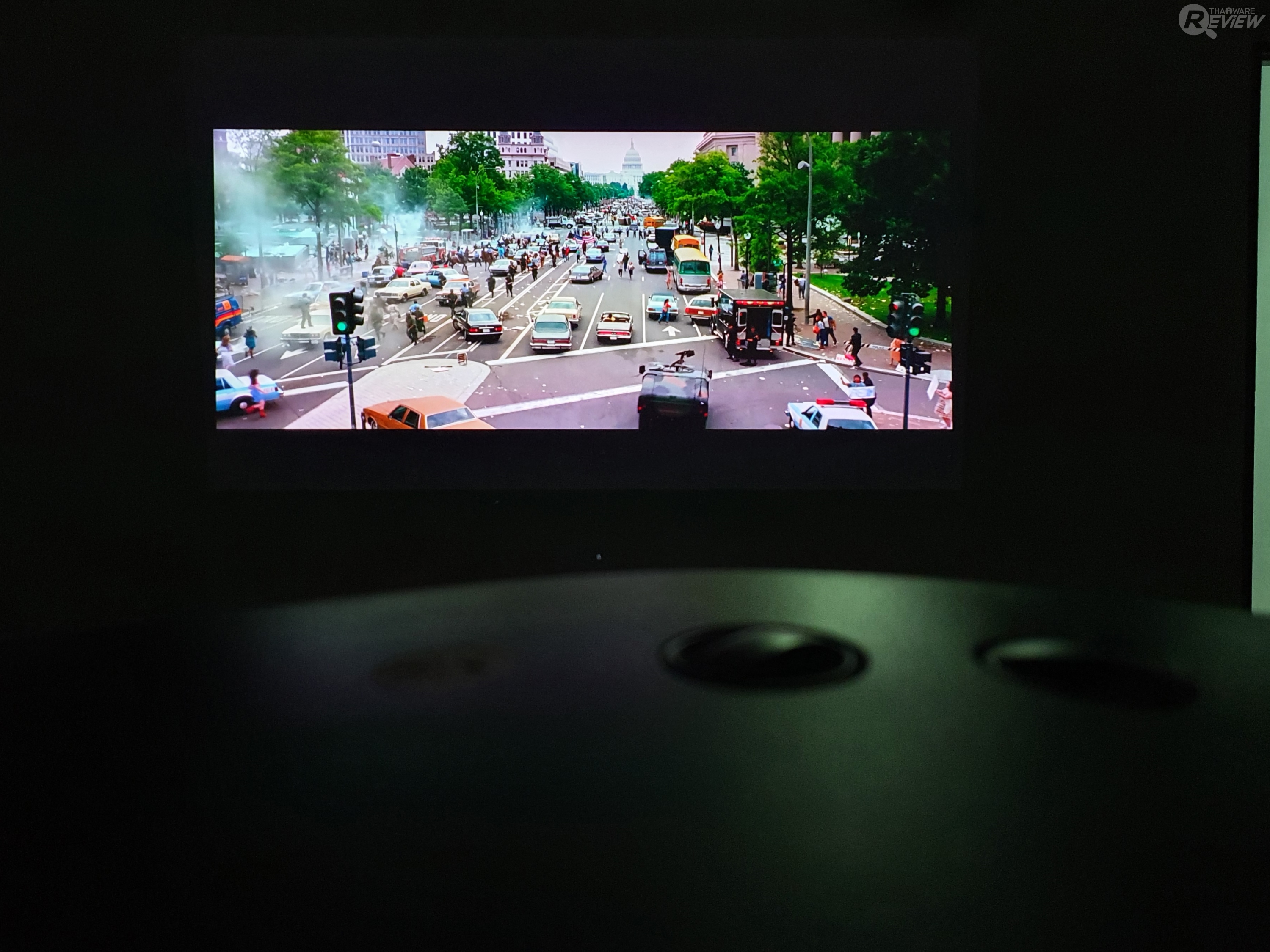 หรือเลือกใช้งานในห้องที่มีแสงสว่าง เปิดไฟในห้องแล้วฉายโปรเจคเตอร์ไปด้วยก็ทำได้เช่นกัน ซึ่งโปรเจคเตอร์ BenQ W5700 มาพร้อมเทคโนโลยี HDR-PRO ช่วยเพิ่มประสิทธิภาพขณะแสดงเฉดสี Active Iris and Dynamic Black ที่ช่วยเพิ่มระดับของความคอนทราสต์และรายละเอียดเมื่อรับชม Blu-rays ความละเอียดระดับ 4K แต่ในการใช้งานจริง พบว่าการฉายวิดีโอในห้องมืด ๆ จะได้อรรถรสที่โอเคกว่าการใช้งานในห้องที่มีแสงสว่าง แต่รวม ๆ แล้วก็สามารถใช้งานได้ทั้งสองแบบ