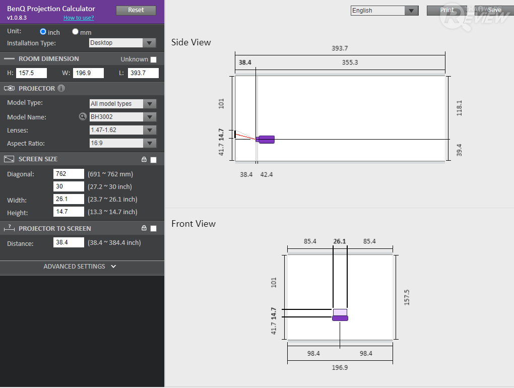 https://projectorcalculator.benq.com/?_ga=2.137872307.2026587438.1611201556-1754209793.1610422013- คู่มือการใช้งาน Throw Distance Calculator