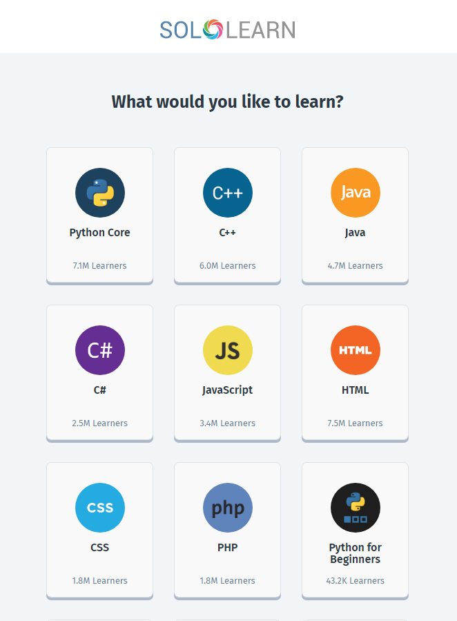 แอปพลิเคชัน SoloLearn เป็นแอปฯ ที่สามารถใช้งานได้ทั้งบนอุปกรณ์ iOS และ Android แถมยังมี Web App ให้สามารถใช้งานได้ในกรณีที่ไม่อยากเรียนในมือถือด้วย ทำให้ค่อนข้างมีอิสระในการเลือกเรียน นอกจากนี้ ตัวแอปฯ ยังมีคอร์สให้เลือกเรียนหลากหลายภาษามาก ๆ ไม่ว่าจะเป็น JavaScript, Python, Java, C++, ฯลฯ เรียกได้ว่าคุณอาจได้เรียนรู้เพิ่มเติมด้วยว่า ในโลกของคอมพิวเตอร์ยังมีภาษาอะไรอย่างอื่นอีกที่คุณอาจไม่เคยรู้จักมาก่อน