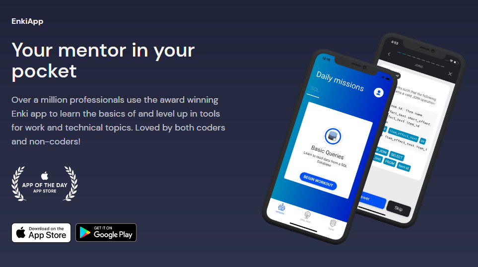 แอปพลิเคชัน Enki App ถือเป็นทางเลือกที่ดีสำหรับคนที่ต้องการเรียนเขียนโค้ดและการติดตามการเรียนรู้อย่างสม่ำเสมอเพื่อพัฒนาทักษะทางด้านการเขียนโปรแกรม ซึ่งเราสามารถแทรคได้ง่าย ๆ และแยกกันอย่างอิสระถึงแม้ว่าคุณจะเรียนหลายภาษาพร้อมกัน โดยภาษาที่มีให้เลือกเรียนได้แก่ Python, Linux, JavaScript, HTML, CSS, Java และ Git